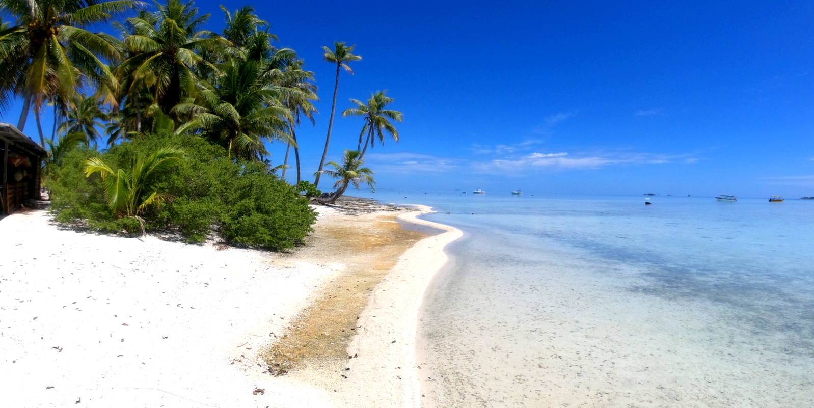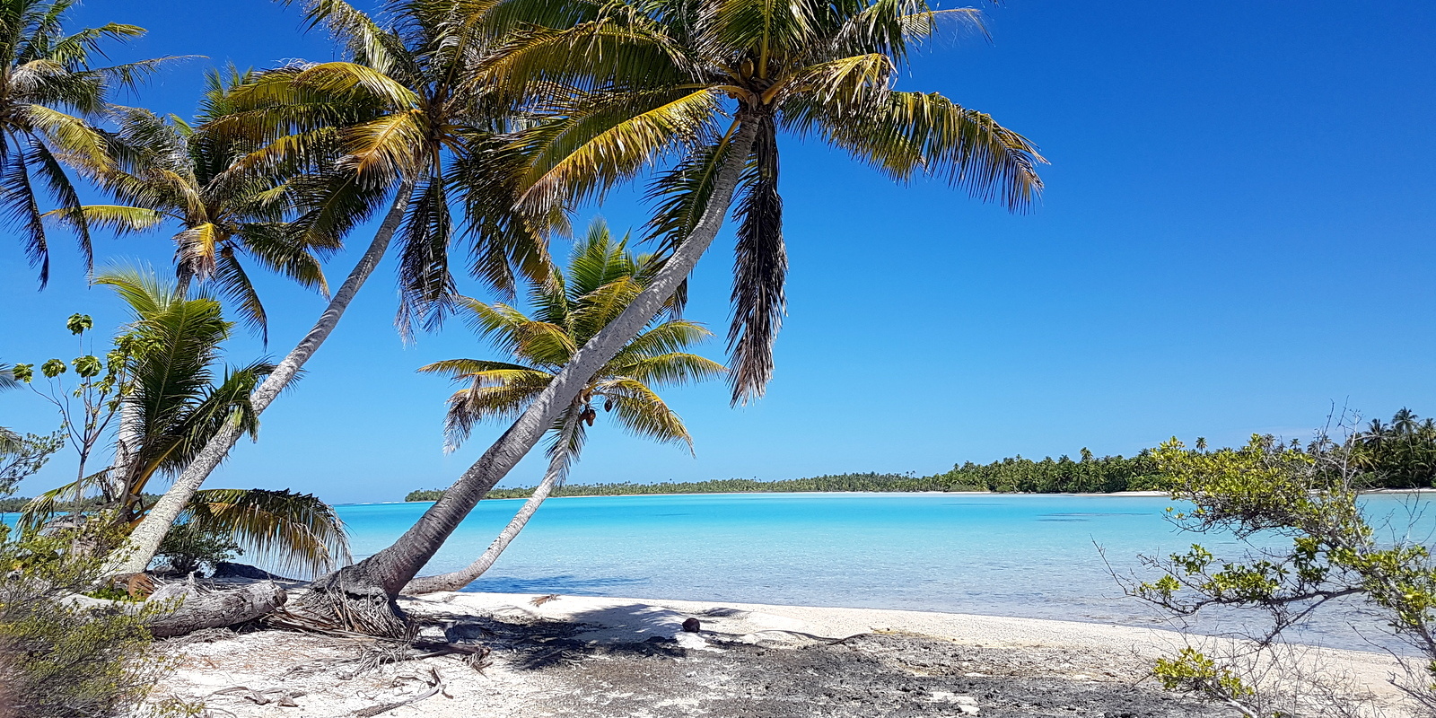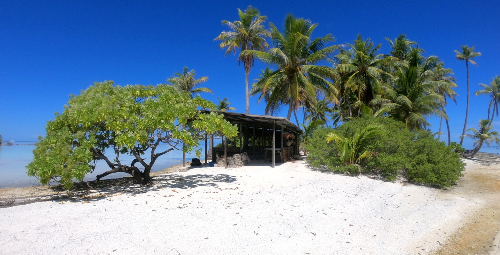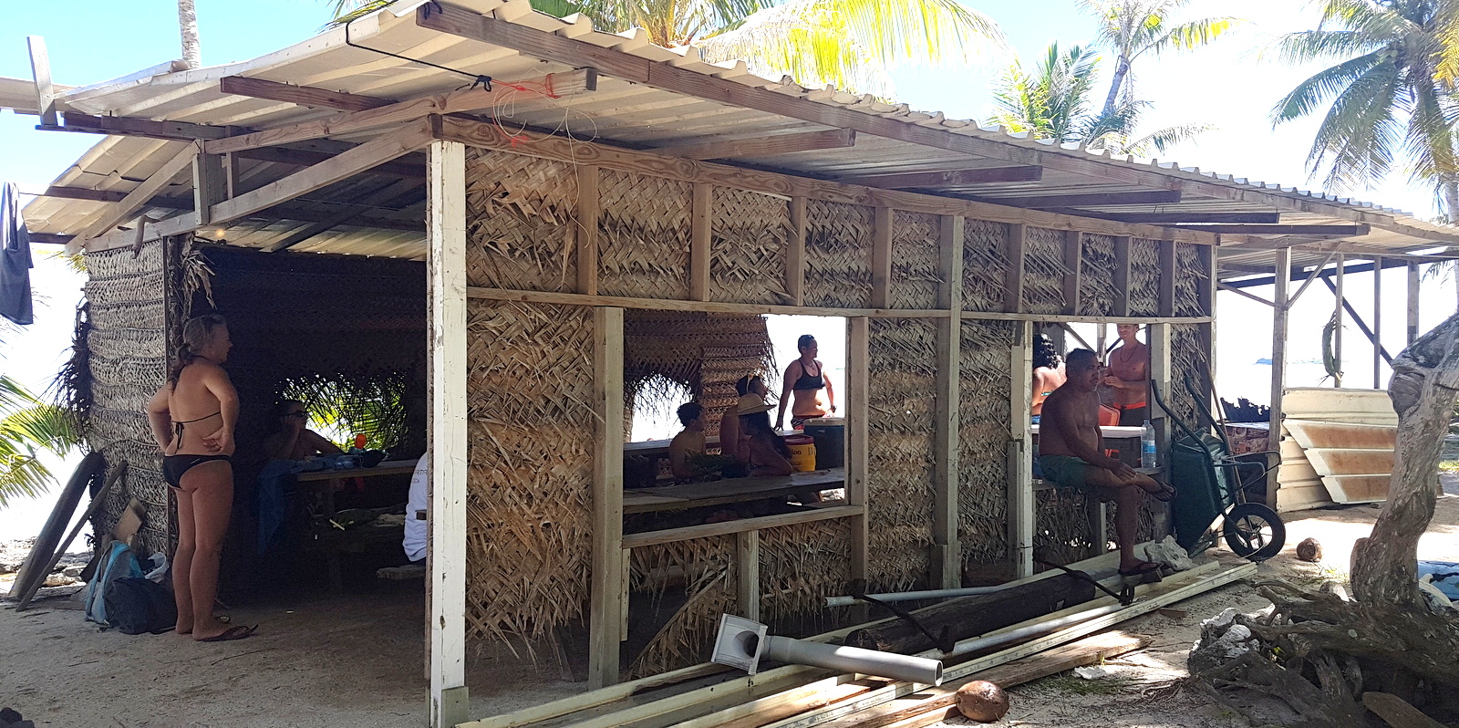 L’après-midi est consacré au farniente, nage et snorkeling dans le lagon bleu. Peu de patates de corail, donc peu de poissons, juste beaucoup de requins pointe noire complètement inoffensifs… On traverse pour aller sur le motu du KIA ORA qui commence à bien souffrir de l’érosion et on barbote dans des couleurs irréelles…