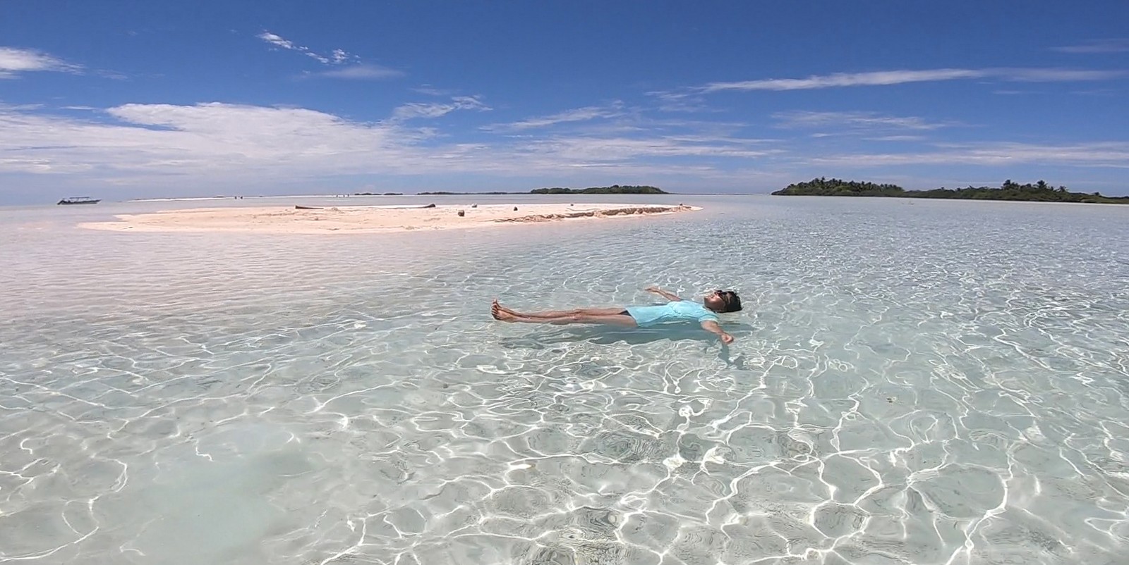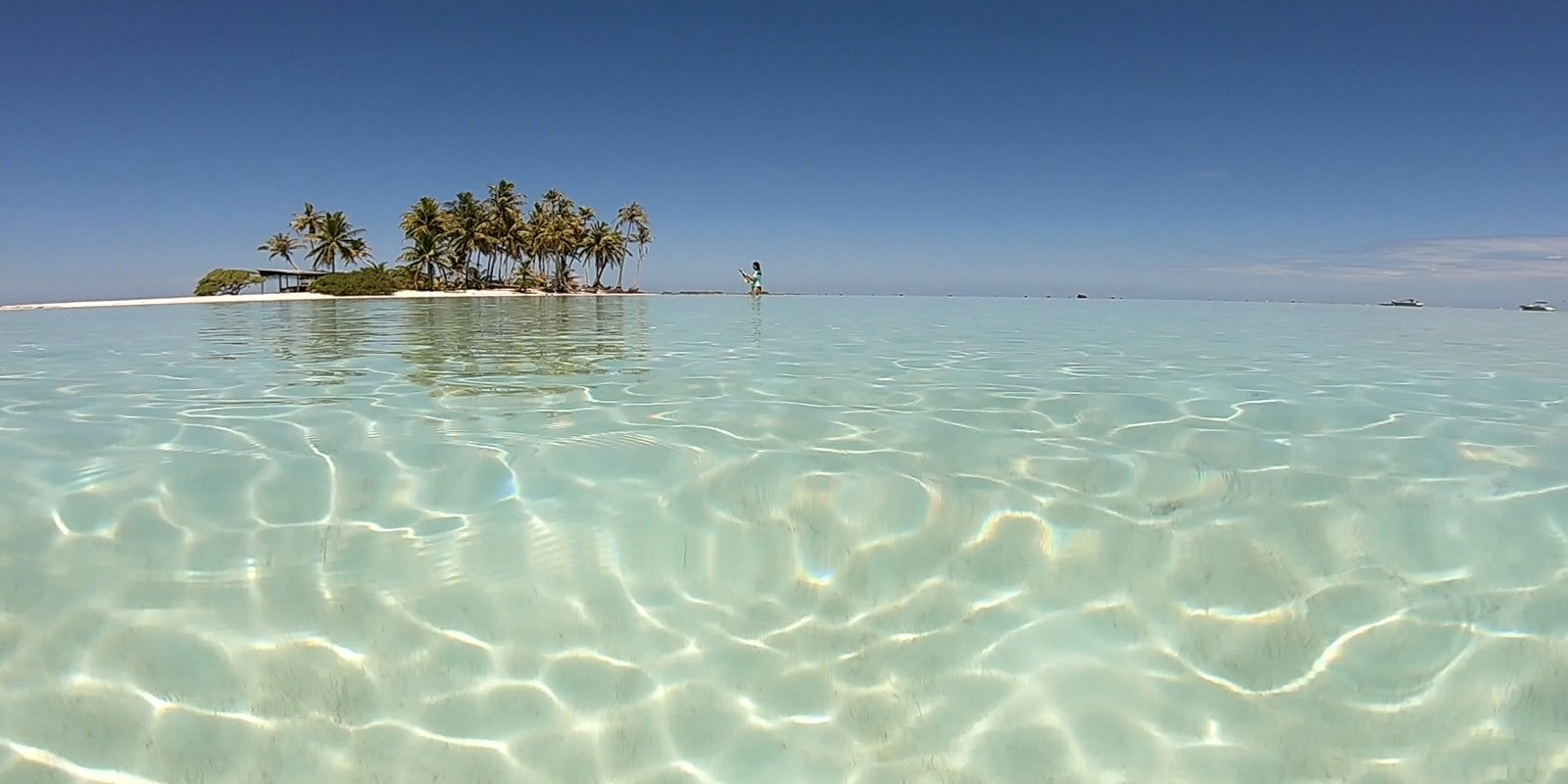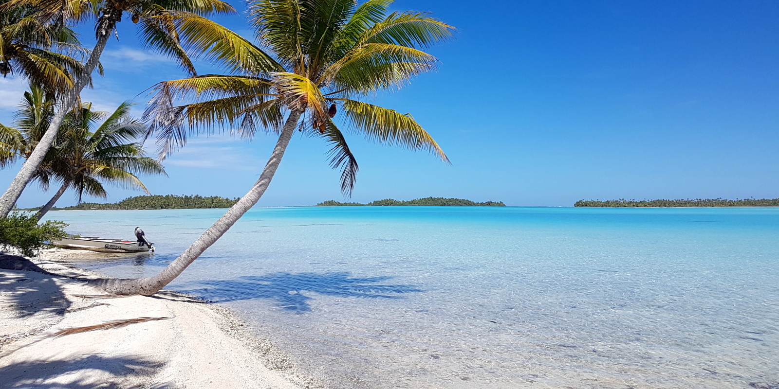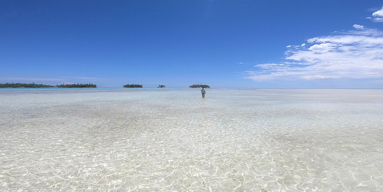 Après 1h et demie de bateau, nous arrivons sur un motu bordé d’un lagon d’un bleu extraordinaire.