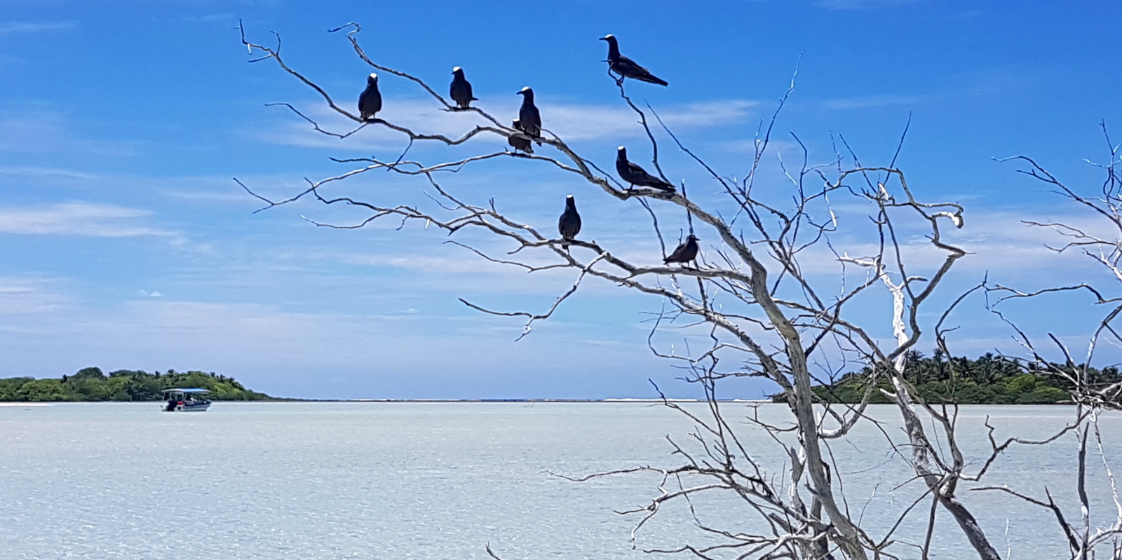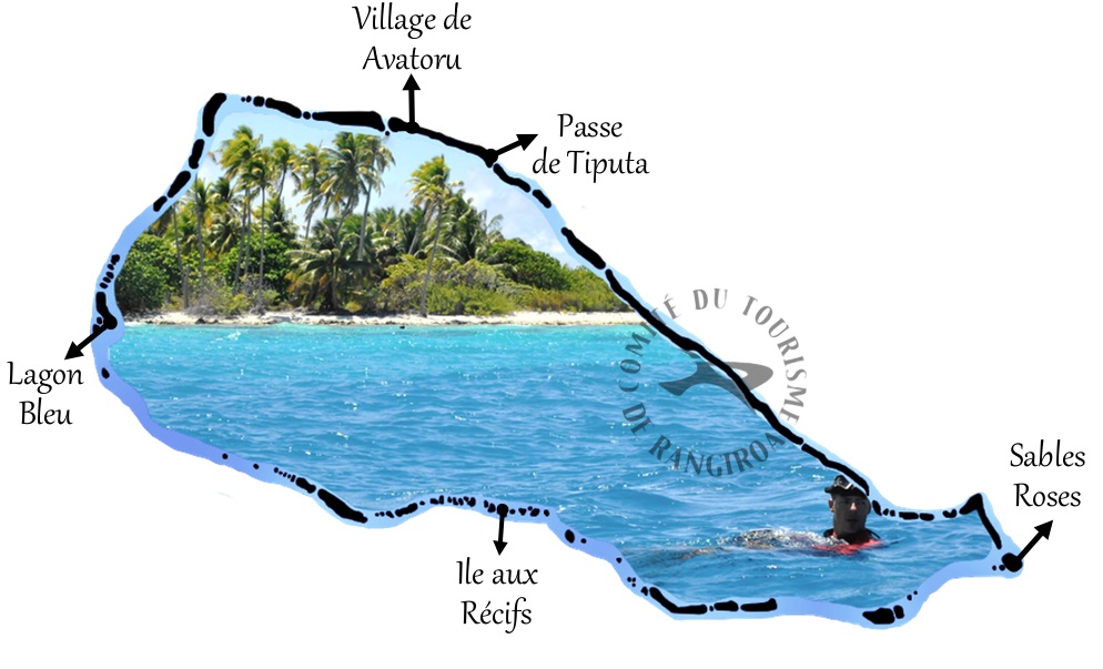 Cette fois-ci, le départ se fait aux alentours de 9h depuis la marina d’Avatoru, près de la passe du même nom. Toujours les mêmes conseils: protection solaire, chapeau, anti-moustiques, anti-nauséeux (si le lagon est agité) et surtout des chaussures pour pouvoir marcher sur le récif!!!