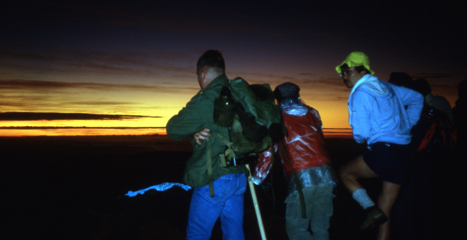 On se tient tous, grelottants au bord du cratère, notre appareil photo prêt pour immortaliser le lever de soleil au dessus des nuages…