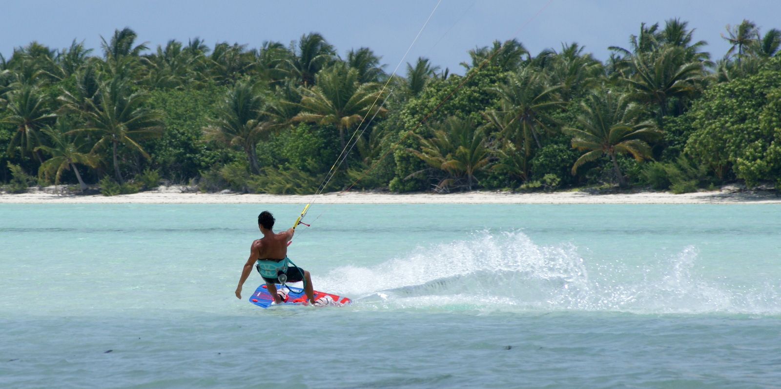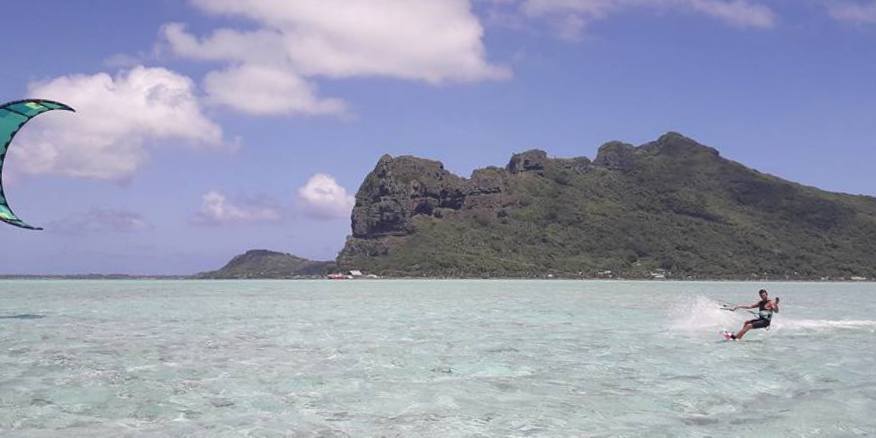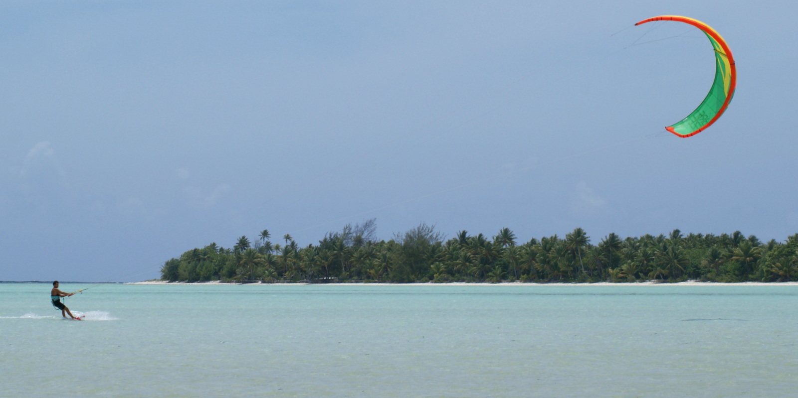 La plage de Tereia est une parfaite aire de décollage, particulièrement le morceau de plage juste avant Maupiti Residence. Pas d’arbre ni obstacle, juste du sable blanc… Pas de vagues dans le lagon donc excellent pour le free-ride. On y croise nombre de raies, de requins que l’on voit parfaitement avec la transparence de l’eau. Un lycra et beaucoup de crème solaire sont indispensables…