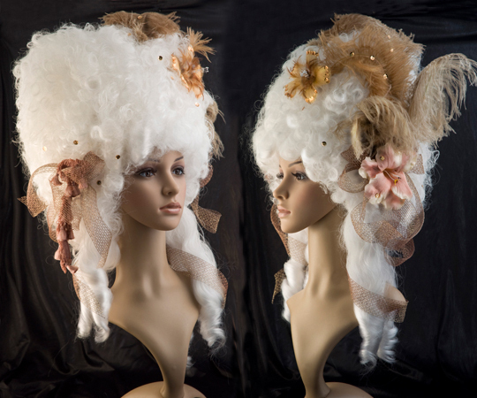 Si vous devez vous contenter d’une perruque fantaisie, prenez la plutôt grise que blanche, elle passera mieux surtout en la customisant d’accessoires (perles, fleurs, plumes) pour une femme et avec un tricorne pour un homme.