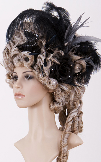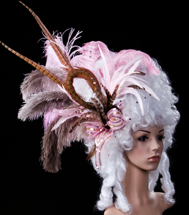Il est relativement facile et pas si cher de trouver des plumes d’autruche ou autre oiseau de toutes les couleurs (CDISCOUNT, PLUMES.FR, AMAZON, MON TRUC EN PLUMES…) pour décorer sa perruque ou son chapeau. Quelques exemples en photos de décoration de coiffures.