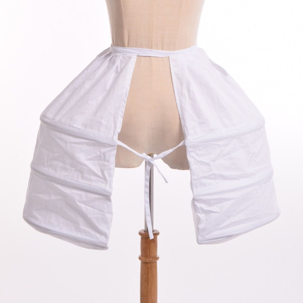 Ce qu’on appelle communément une crinoline et qui n’en est pas une puisque la crinoline est évasée dans le bas et se portait plus avec les robes de style début 19ème. Sous une robe 17 et 18ème, on porte un panier. Il en existe plusieurs sortes: le grand panier, les paniers latéraux, les coussins (voir les différents styles… J’ai eu beaucoup de chance en achetant ma robe car le grand panier ovale était vendu avec et j’ai donc pu l’utiliser avec mes autres robes. J’ai tout de même acheté des paniers latéraux sur Ebay plus pratiques car moins encombrants et pliants pour une robe Marie-Antoinette pirate pour un festival à Key West (ce que je vous raconterai dans un autre article…)