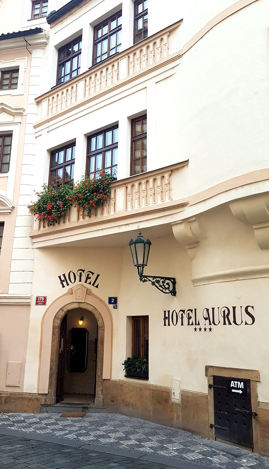 Près des quais en se rapprochant de Kampa, un hôtel haut de gamme installé dans un immeuble du 16ème siècle qui surplombe la place Na Kampe et la rivière Vltava. On peut y avoir une chambre double autour de 70€ !!!