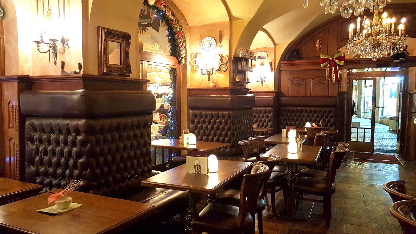 Le bâtiment entre la Place et le pont Charles date de 1360, il est très réputé donc il faut réserver longtemps à l’avance.