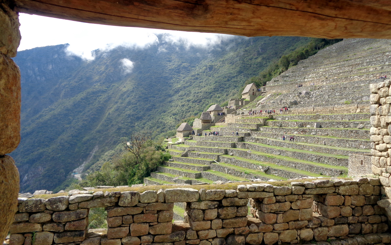 Notre guide francophone nous a accompagnés pendant 3 h puis elle nous a laissé quartier libre… Elle nous a conseillé de faire la porte du soleil: 2h aller-retour d’où l’on a une vue sur le site et la route en lacets pour y accéder. On y accède par le chemin tout de suite à gauche en entrant. L’un d’entre nous l’a fait, les 2 autres dont moi, ont préféré s’arrêter à la maison du gardien pour contempler la vue magnifique. On est quand même devant une des 7 merveilles du monde moderne !!! C’est de là que sont prises les photos les plus connues du Machu Picchu…