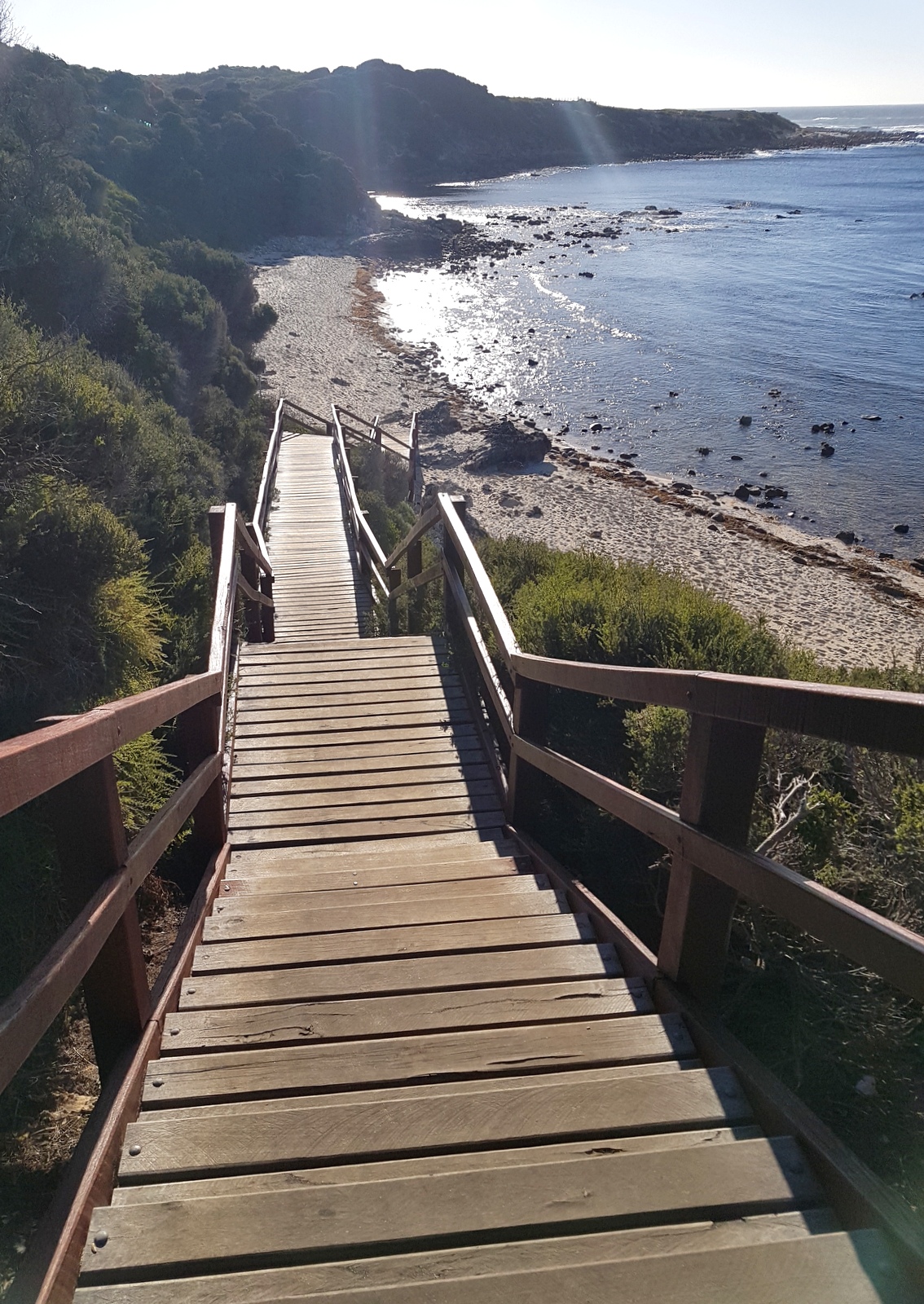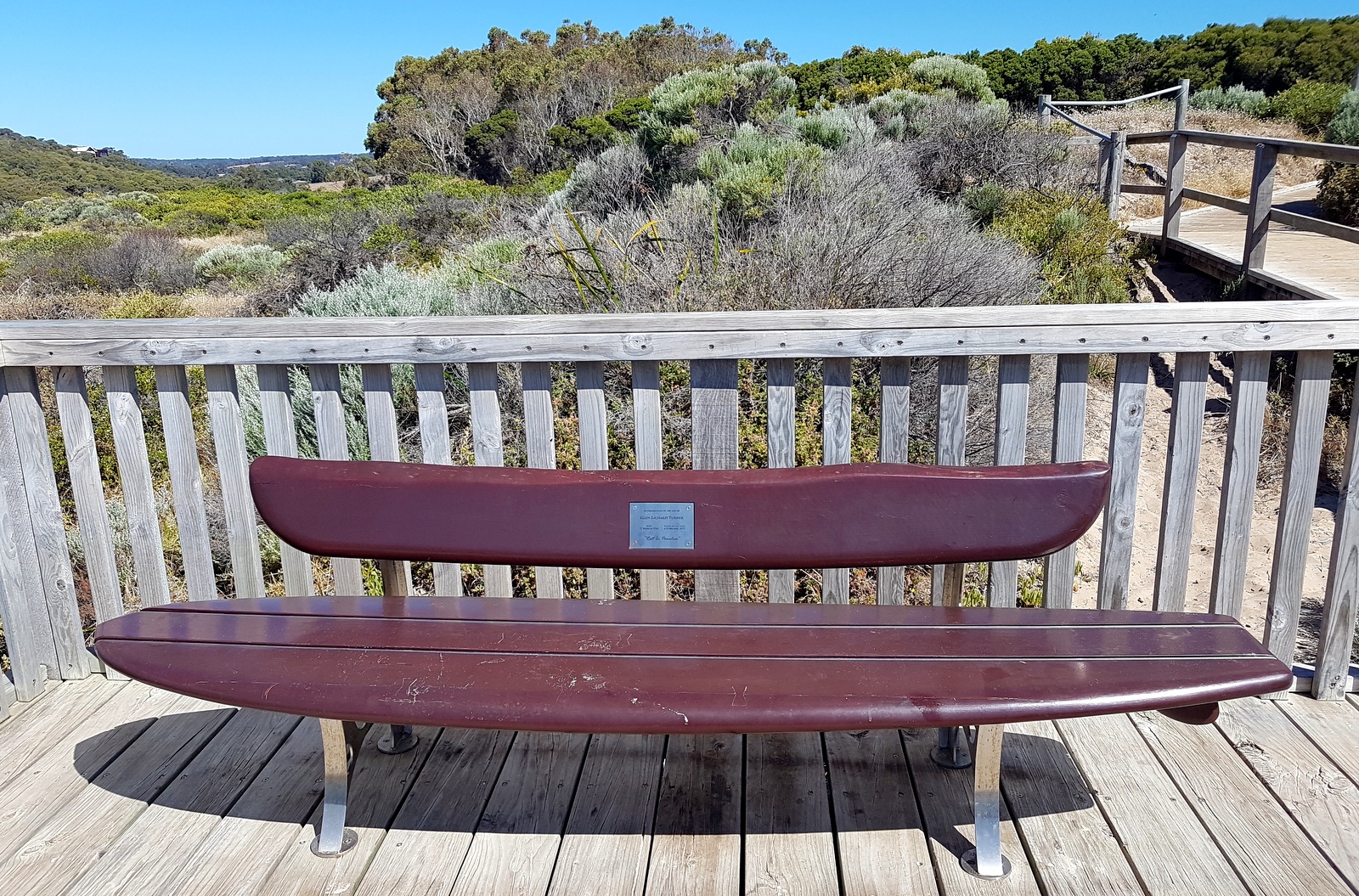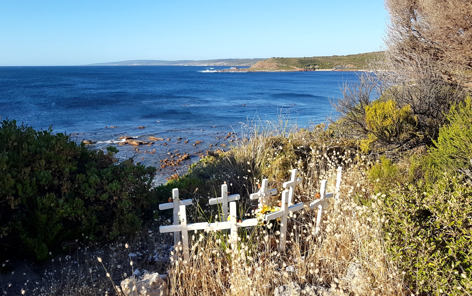 C’est bien dommage parce que c’était unique, on pouvait se rapprocher au plus près des vagues qui s’écrasaient sur les rochers. On y a croisé 2 surfeurs australiens qui se sont mis à l’eau sans aucune crainte de l’eau froide, des rochers avoisinants et… des requins! Les vagues sont magnifiques mais visiblement ce spot est réservé aux connaisseurs et à ceux qui pourront faire abstraction des plaques commémoratives, dédiées aux surfeurs qui se sont fait croquer, disposées sur les bancs…