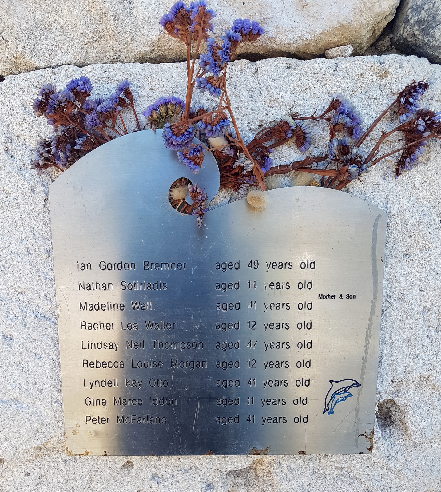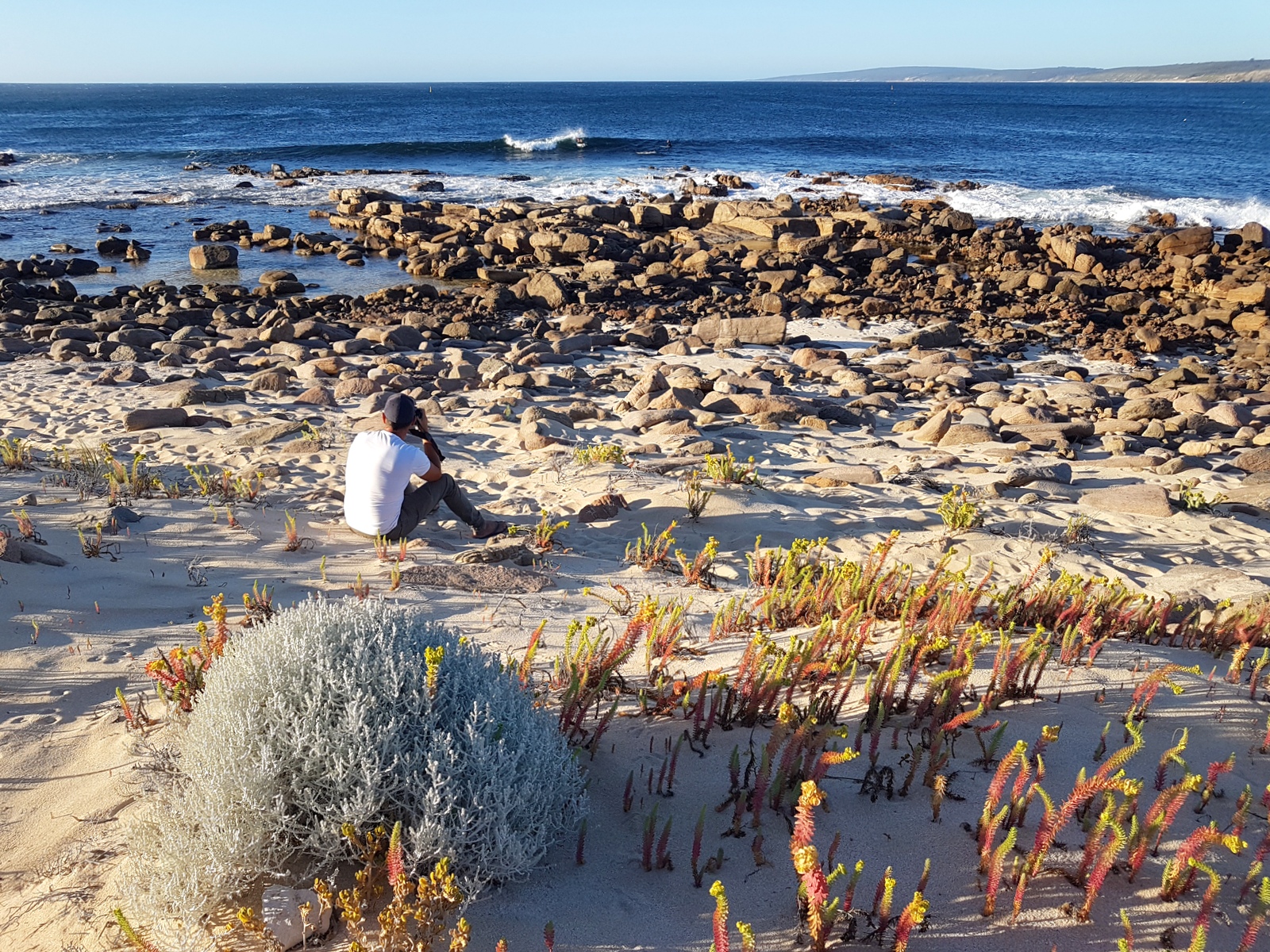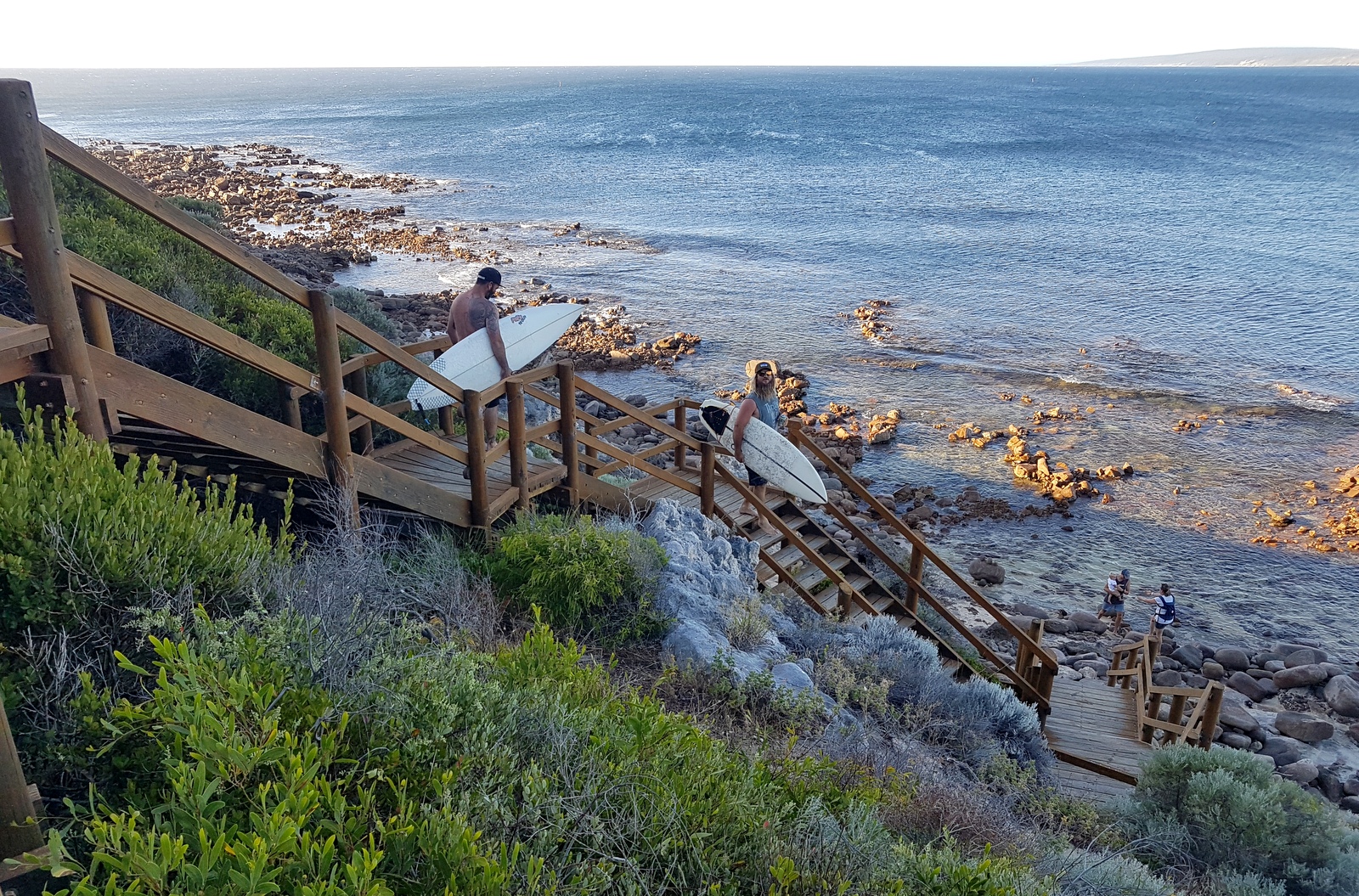 C’est bien dommage parce que c’était unique, on pouvait se rapprocher au plus près des vagues qui s’écrasaient sur les rochers. On y a croisé 2 surfeurs australiens qui se sont mis à l’eau sans aucune crainte de l’eau froide, des rochers avoisinants et… des requins! Les vagues sont magnifiques mais visiblement ce spot est réservé aux connaisseurs et à ceux qui pourront faire abstraction des plaques commémoratives, dédiées aux surfeurs qui se sont fait croquer, disposées sur les bancs…