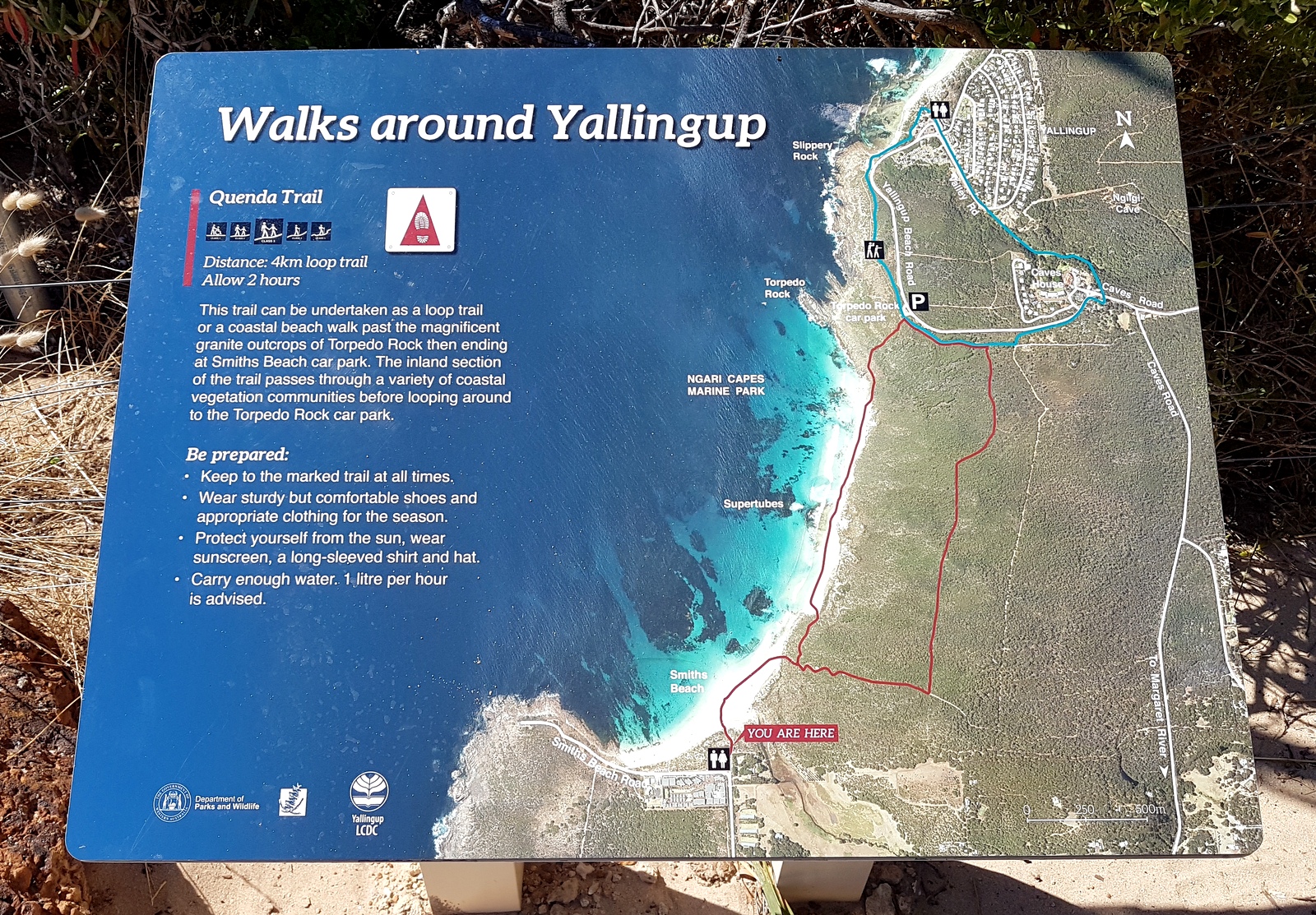 Le Cape Naturaliste est la partie la plus au nord du Leeuwin-Naturaliste National Park qui s’étend sur 120 kms jusqu’au Cape Leeuwin. Il existe une sentier pédestre pour les relier: le CAPE TO CAPE TRACK. D’une difficulté modérée, il faut environ 7 jours pour le parcourir seul ou avec un guide. Il est recommandé de la faire dans le sens nord-sud, depuis le Cape Naturaliste, pour ne pas avoir le vent et le soleil de face… Si l’aventure vous tente, un site spécialisé: FRIENDS TO THE