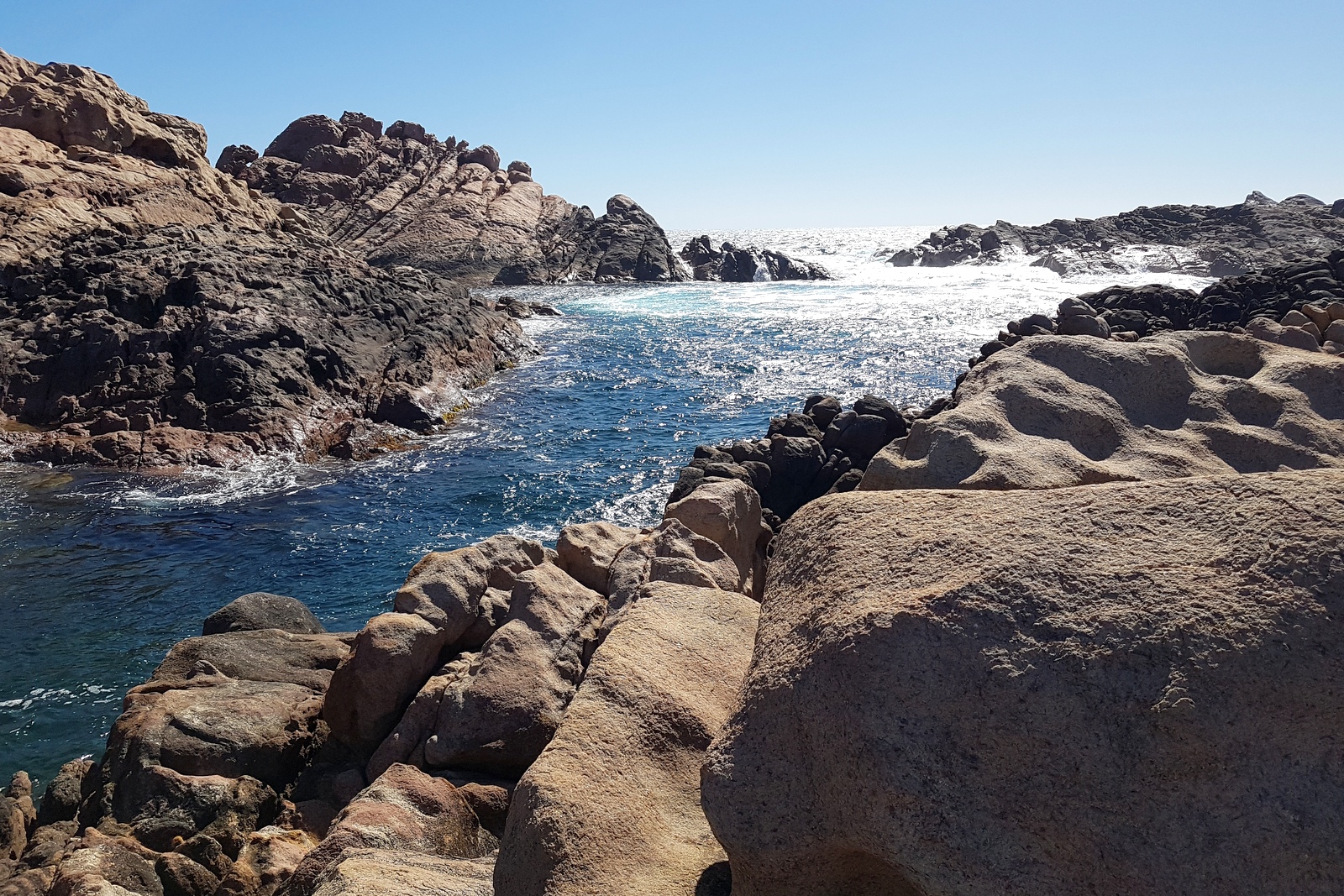 A l’extrémité sud de la plage précédente, les variétés de couleurs de ce « lagon » sont étonnantes, les rochers tout proches, sur lesquels se brisent les vagues font le bonheur des surfeurs et des plongeurs…