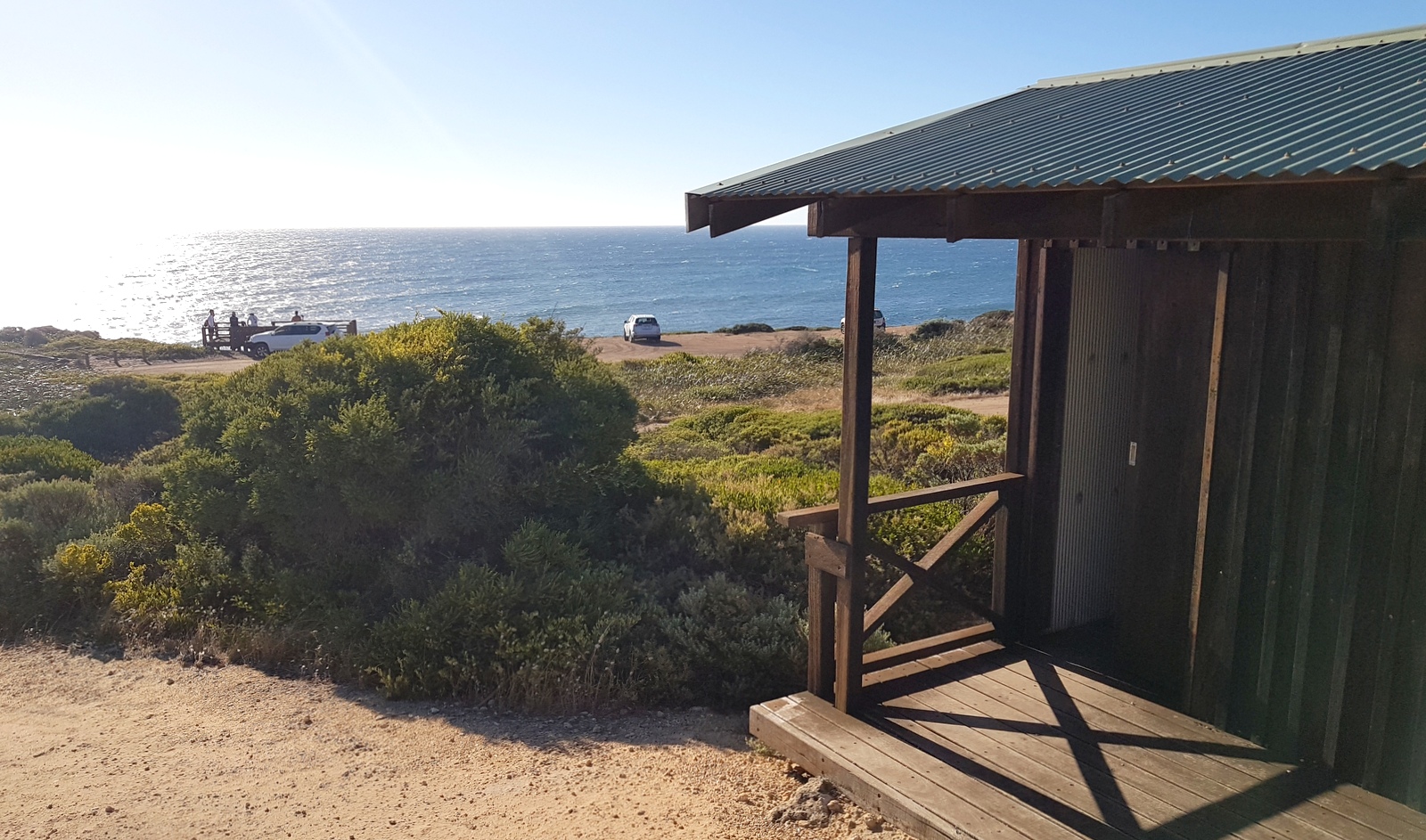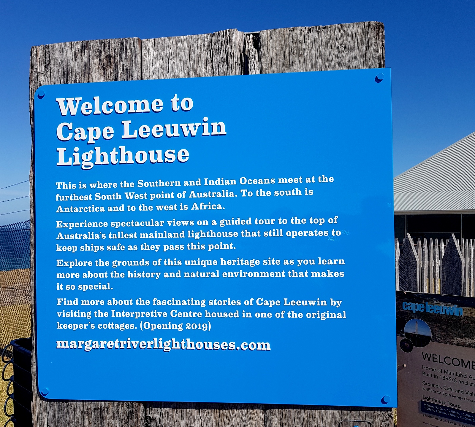 A côté de l’Interpretive Centre, il y a un petit café qui offre une vue spectaculaire sur l’océan et le phare depuis ses 3 façades vitrées. L’accueil y est chaleureux, les sandwichs, scones et pies réputés excellents… On n’y a bu qu’un café car on avait prévu de déjeuner à notre prochaine arrêt: Augusta!