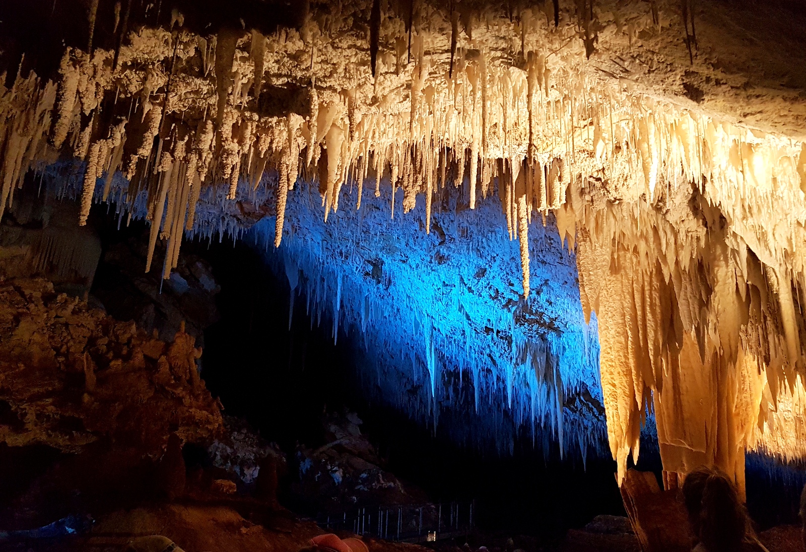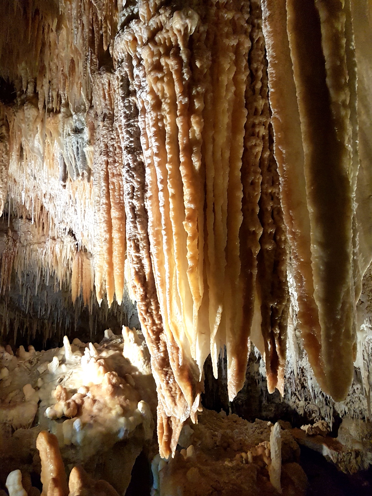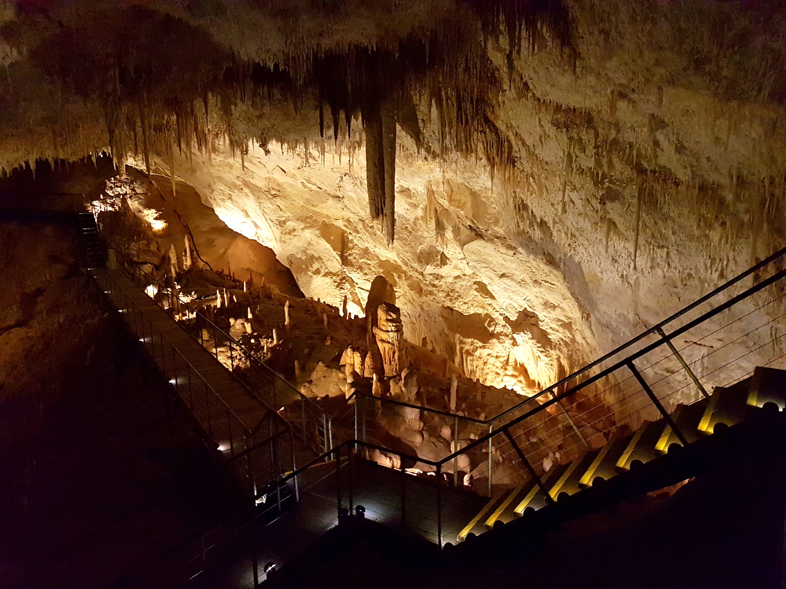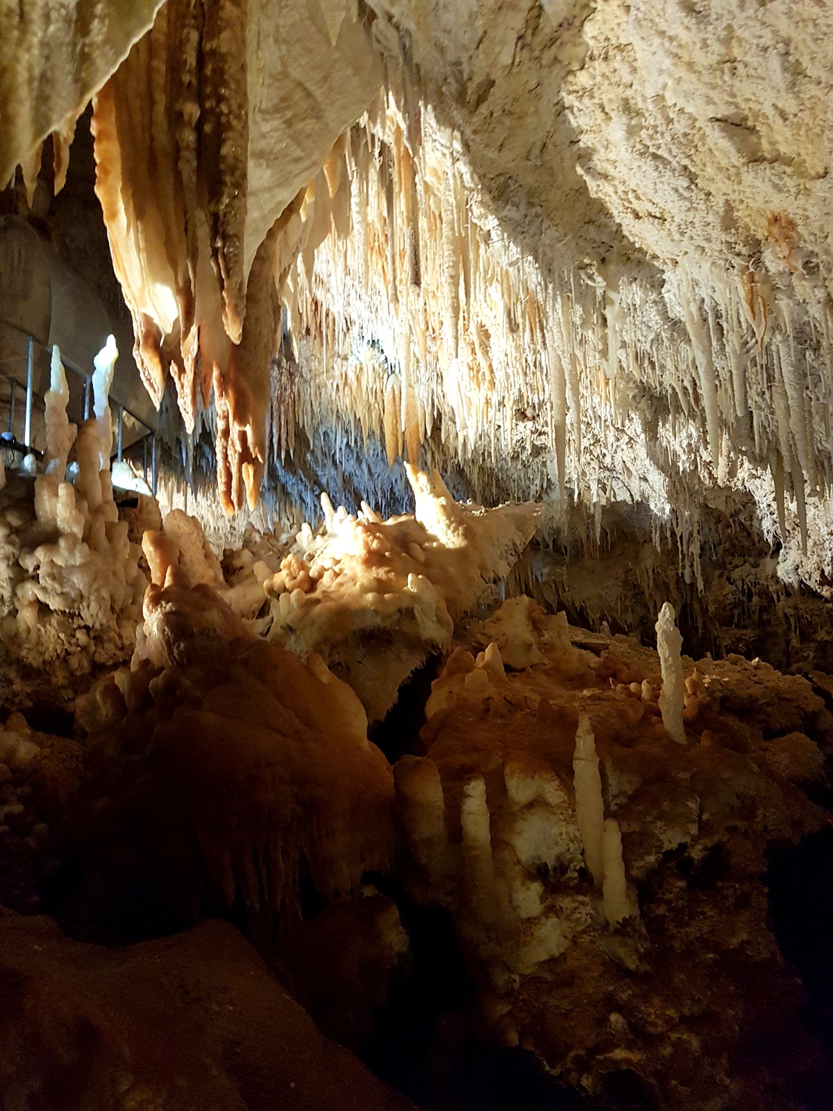 Déjà parce que pour y aller on doit cheminer dans la forêt comme pour le Boranup Drive et ensuite parce qu’elle est un harmonieux mélange d’un cénote et d’une grotte féérique! Un peu comme à Mount Gambier, que j’ai adoré… On commence la visite par une passerelle au dessus d’un cénote envahi par une végétation luxuriante. Il faut ensuite descendre 350 marches pour atteindre la grotte la plus profonde de la région à 62m de profondeur. Son originalité par rapport aux autres, c’est le lac permanent qui reflète toutes les formations magnifiquement éclairées.