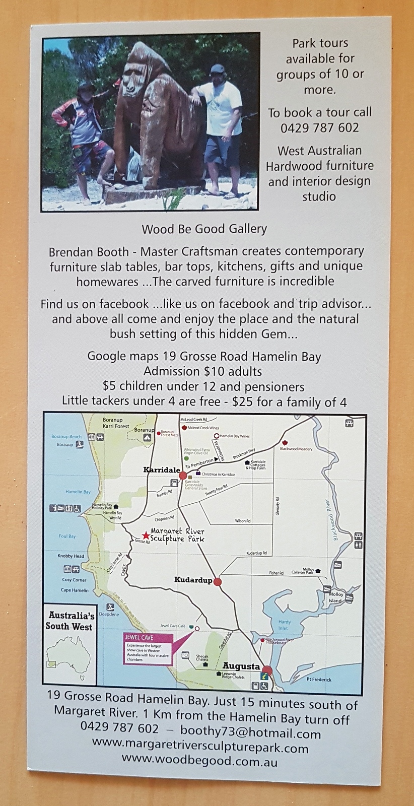 Ces combos sont assez durs à trouver enligne mais ils peuvent s’acheter à l’entrée des grottes ou dans l’un des MARGARET RIVER TOURIST INFORMATION CENTRE.