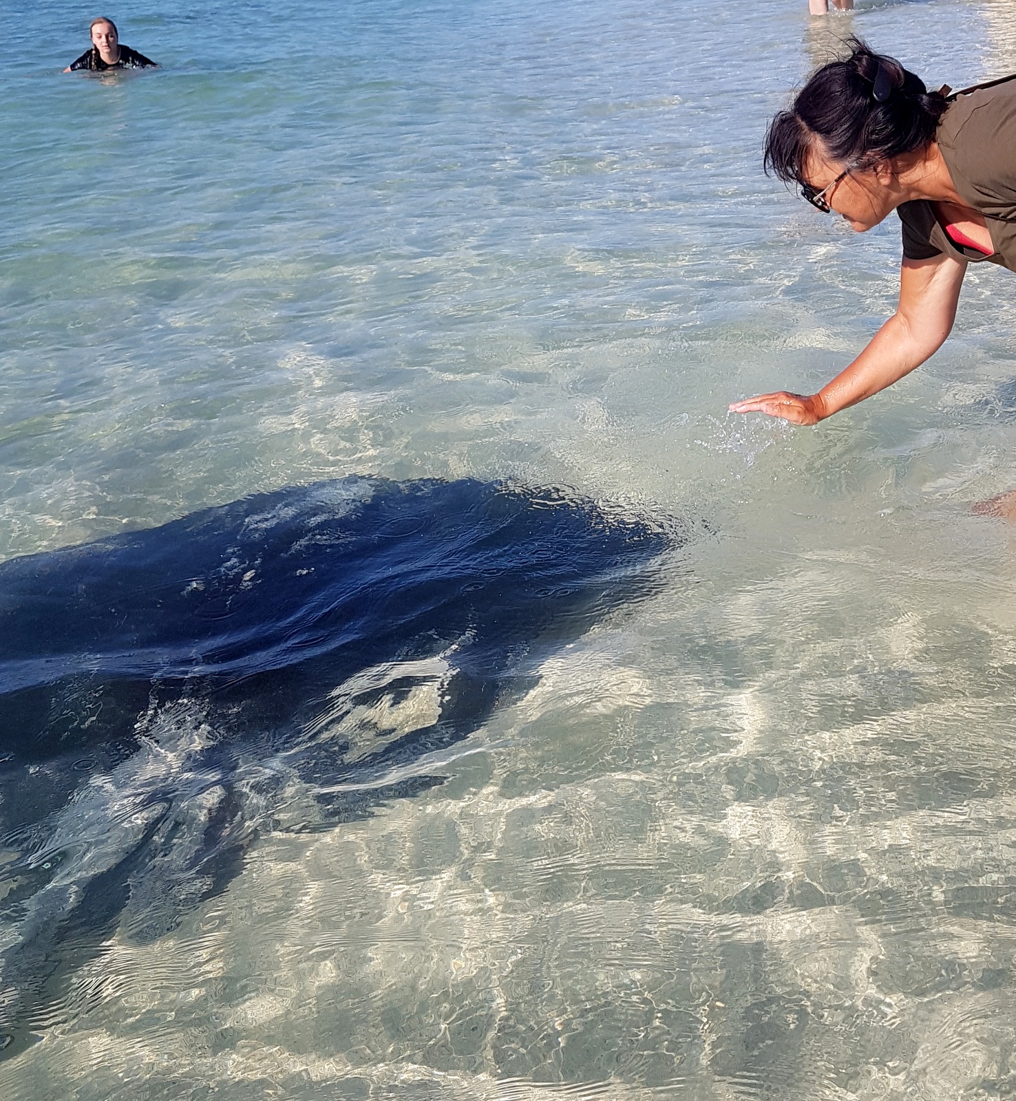 Elles ont pris l’habitude de venir car elles sont nourries par les pêcheurs depuis des années. On peut les attirer en tapotant légèrement sur l’eau en gardant toujours à l’esprit que ce sont des raies pastenagues avec un dard très dangereux! Elles ne sont pas agressives mais ça reste des animaux sauvages qui peuvent avoir des réactions imprévisibles Elles sont protégées et il est interdit (sous peine d’amende) de leur faire le moindre mal…