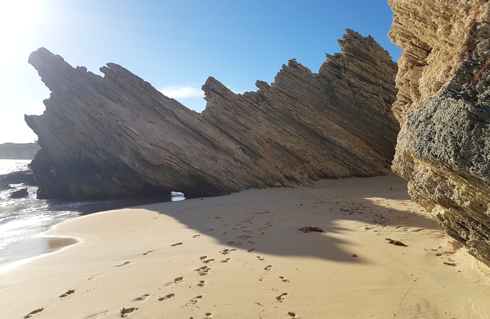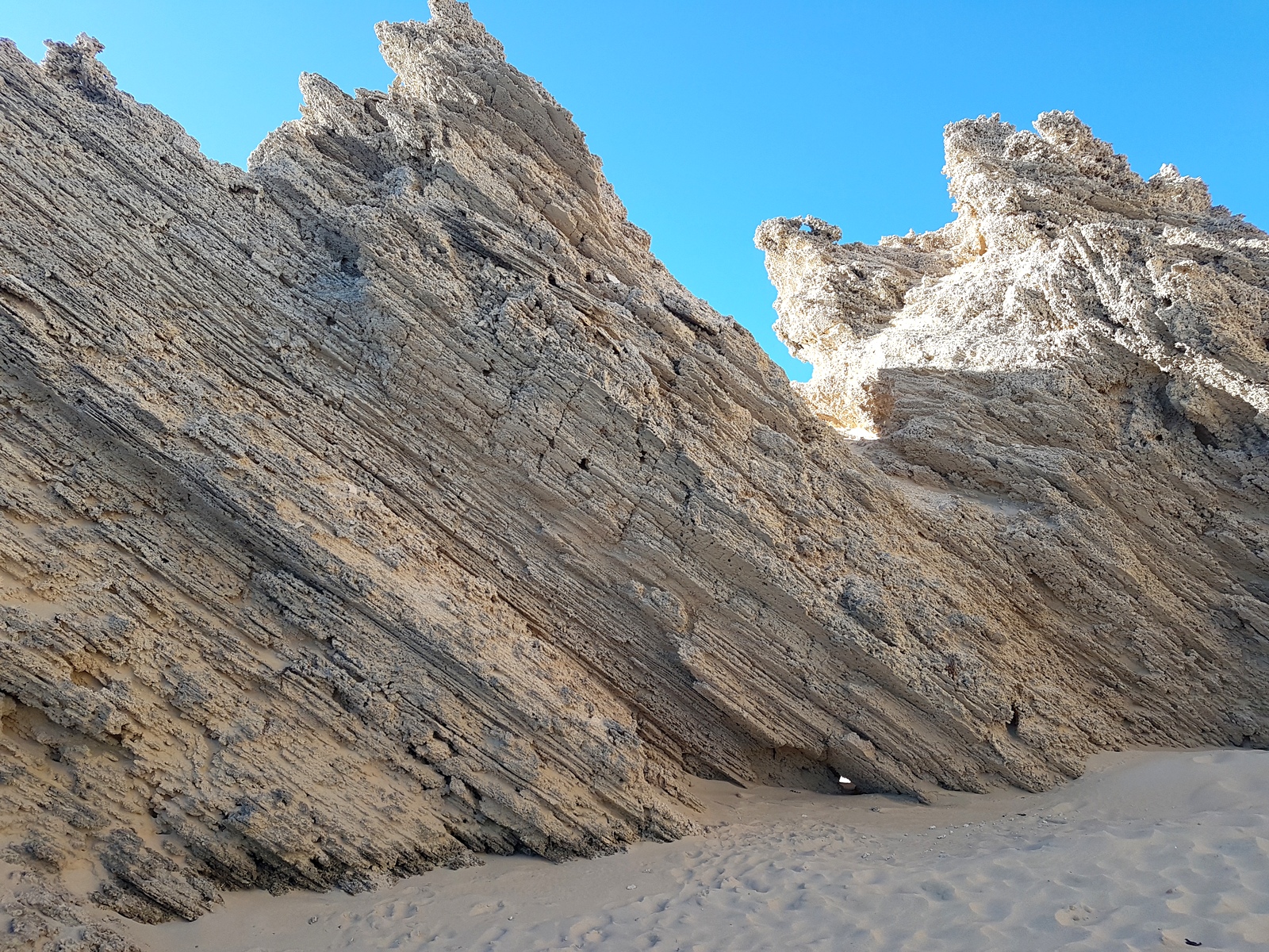 Tout au bout de la plage sur la gauche, il y a d’étonnantes formations de calcaire…