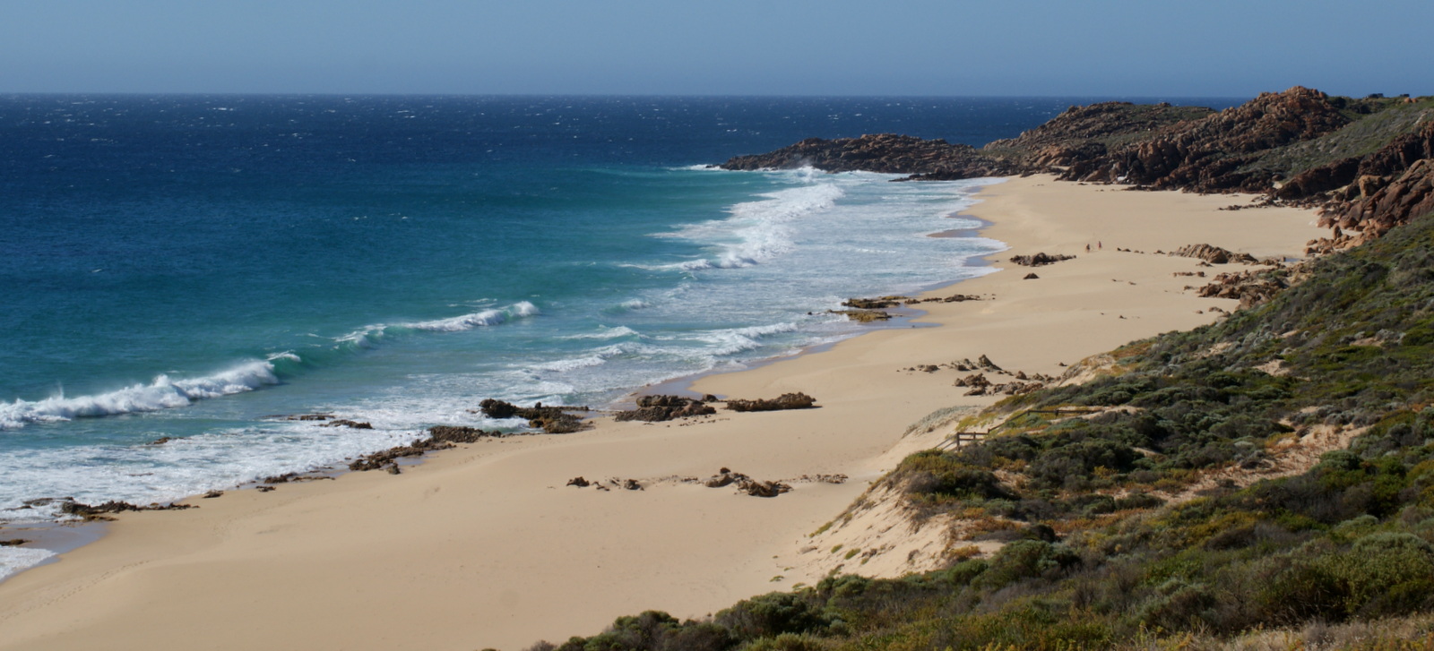 Encore une spot de surf réputé à mi-chemin entre Yallingup et Gracetown. On accède au parking via une route non bitumée sur les derniers 500m accessible aux véhicules légers et à la plage via un long escalier de bois…