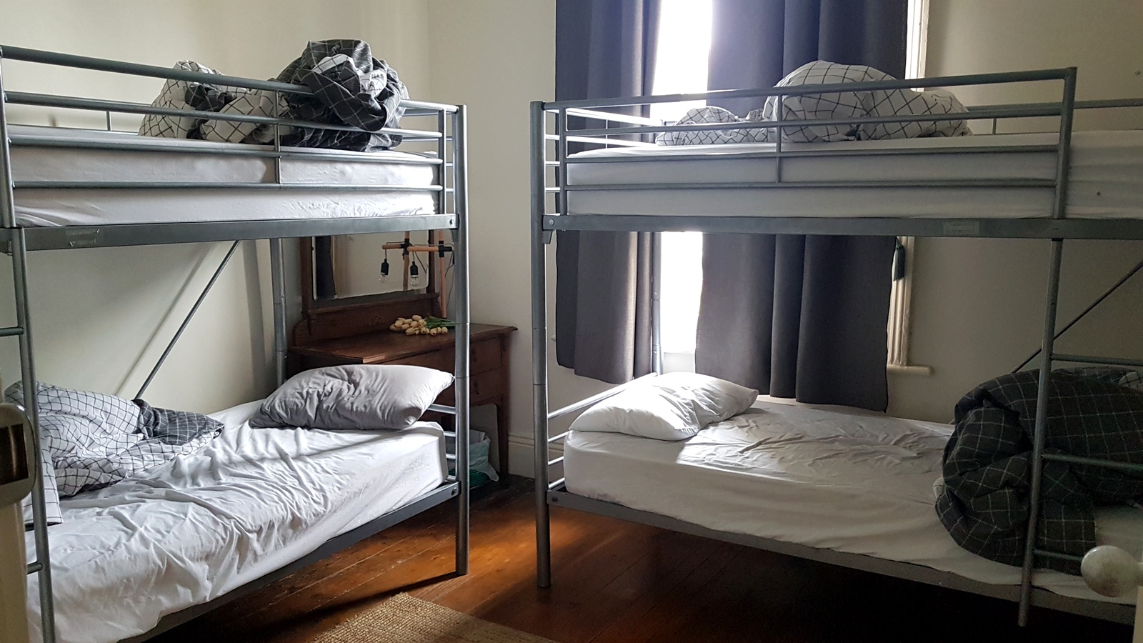 Avec notre habitude de ne rien réserver à l’avance, on n’a pas eu le choix et on s’est retrouvés à 2 dans une chambre dortoir spartiate de 4 lits à 30 AU$ (20€)/lit soit 120 AU$ (80€) sans sdb: la cellule 30, plus chère que les 20 ou 21 beaucoup plus agréables… dommage mais on était tout de même contents de pouvoir y séjourner!!!