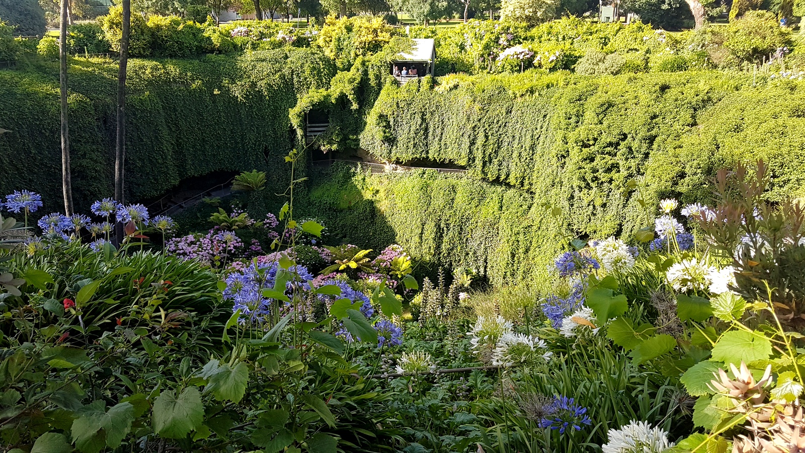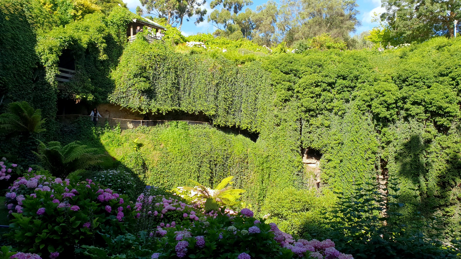 Il est construit dans une immense caverne ouverte dont le « toit » s’est effondré. Il a été aménagé par James Umpherston, le propriétaire, autour de 1886! Il possédait alors le parc tout autour dont une magnifique demeure victorienne, détruite en 1964, qui donnait sur ce jardin… Ca devait être incroyable!