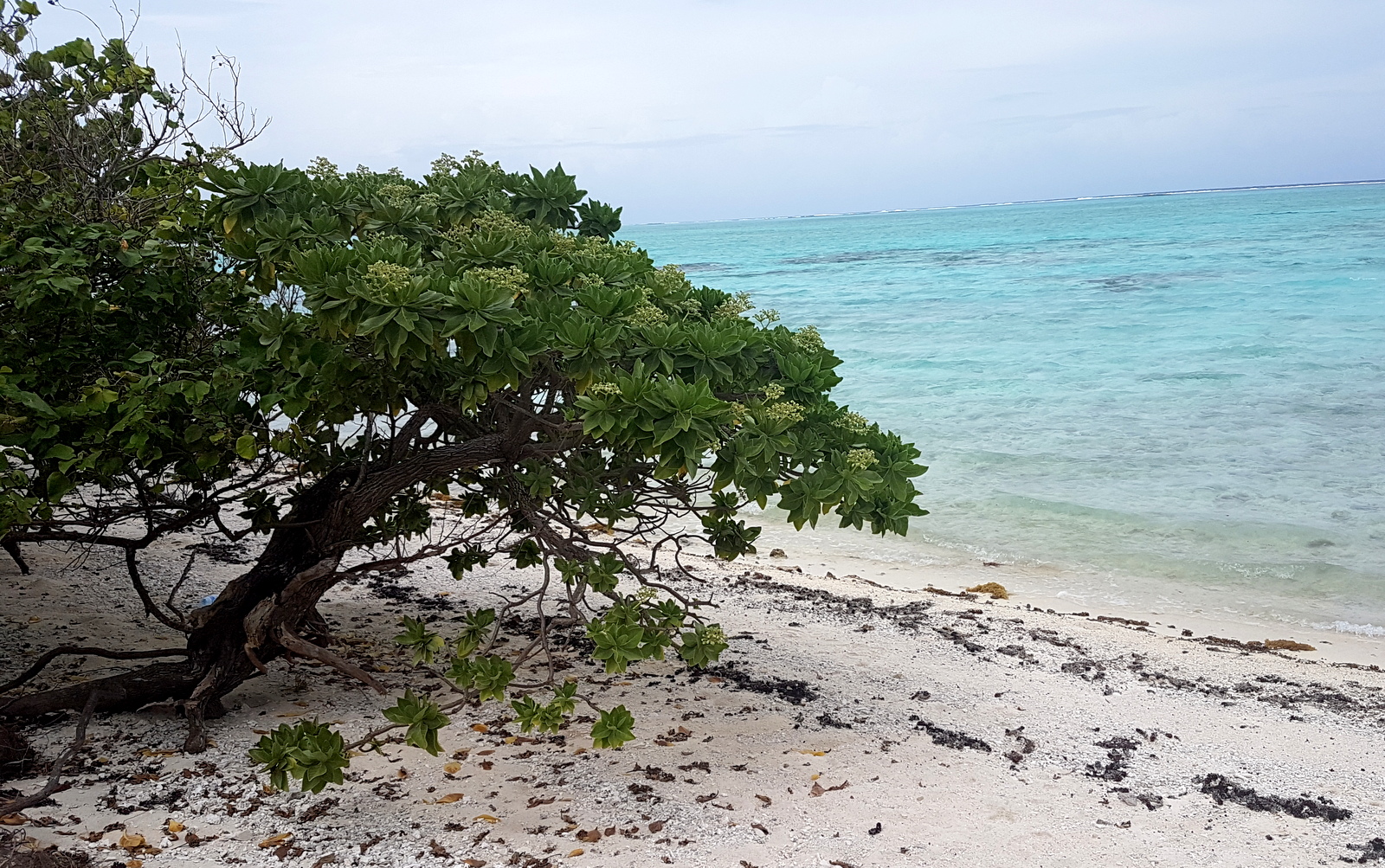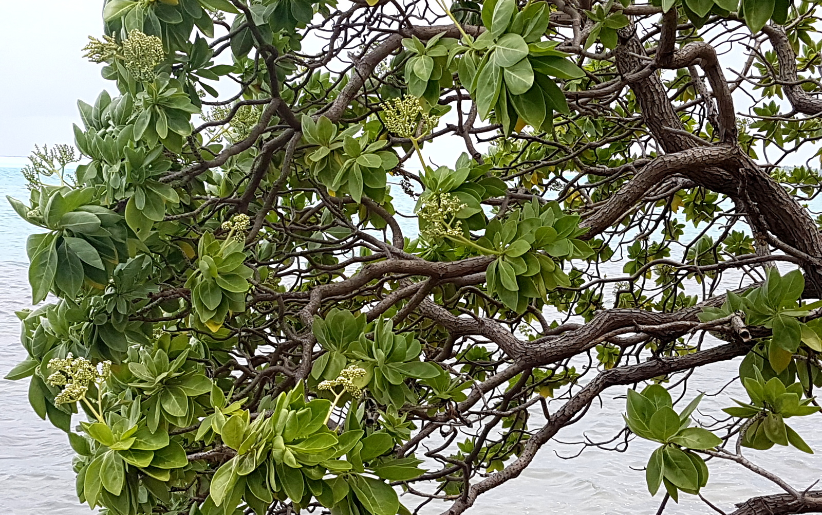 L’hibiscus des plages est présent sur presque toutes les plages de Polynésie. Vous le reconnaîtrez facilement à ses fleurs qui ressemblent un peu à des hibiscus, des fleurs éphémères qui sont jaune clair le matin, jaune soutenu dans l’après-midi et presque rouge le soir quand elles tombent sur la plage…