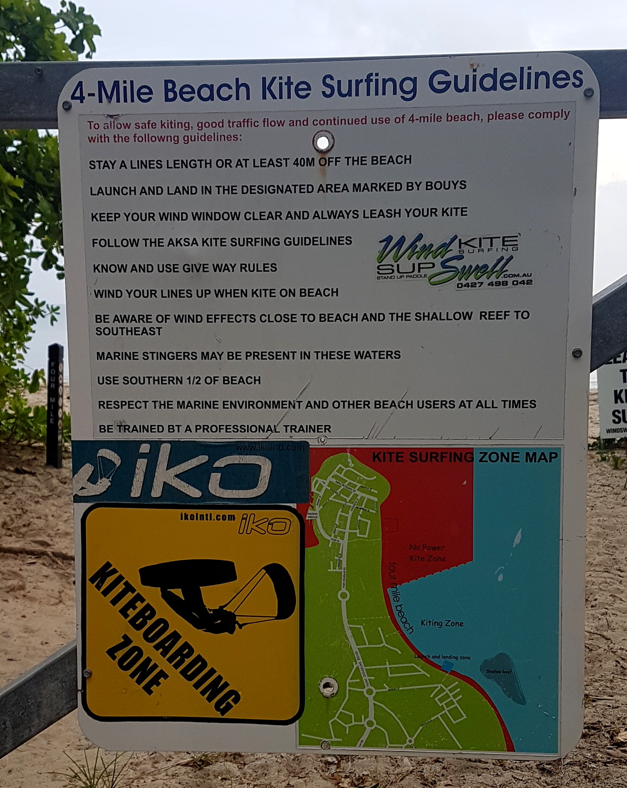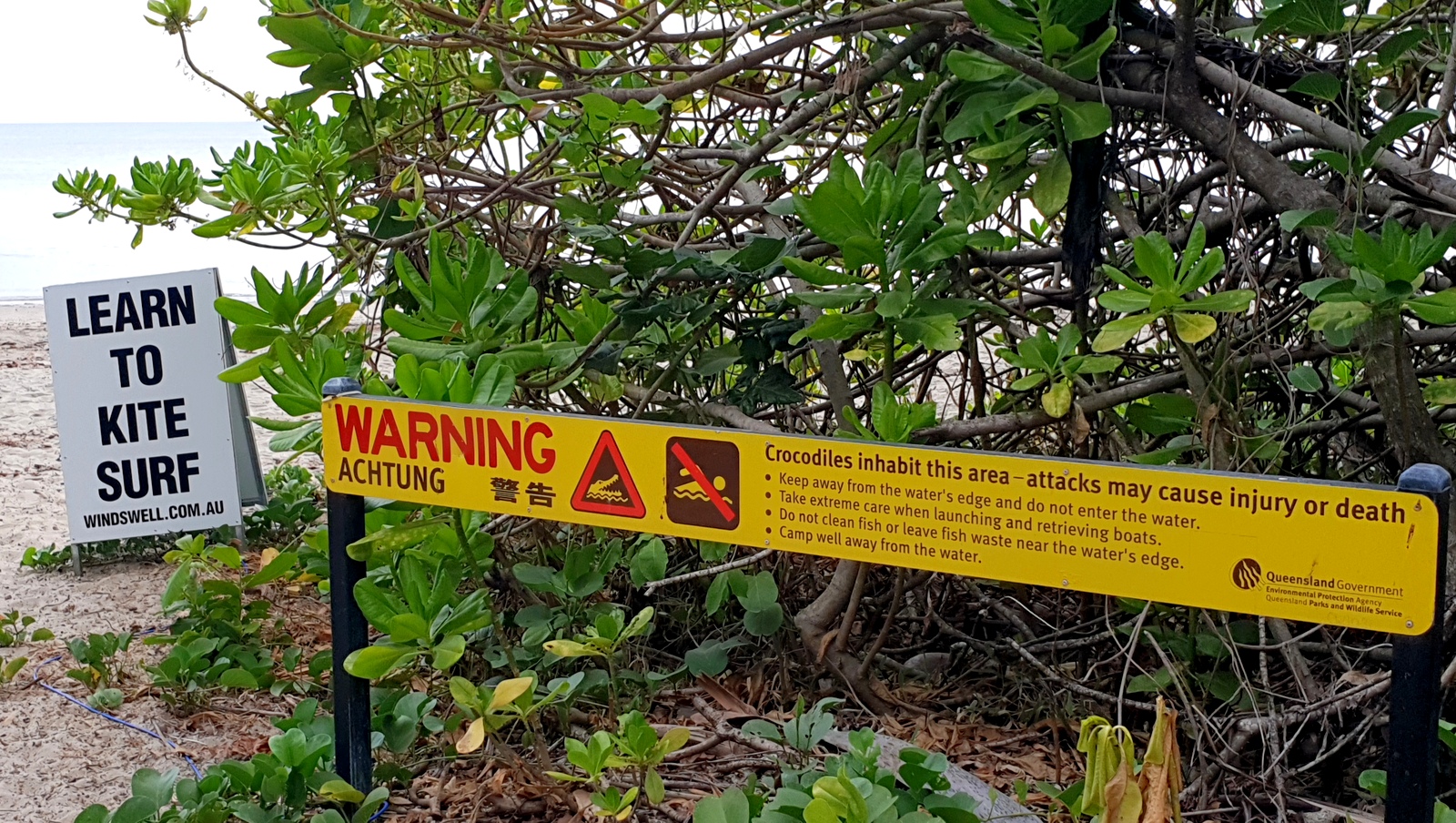 Comme sur toutes les plages du nord du Queensland, il est également totalement inenvisageable de se baigner quelque soit la période de l’année à partir du coucher du soleil jusqu’au lever à cause des crocodiles marins. Ils sont, régulièrement, vus nager le long de la plage ce qui résulte en sa fermeture (2 fois en septembre 2018 et plus récemment fin mars 2019!).