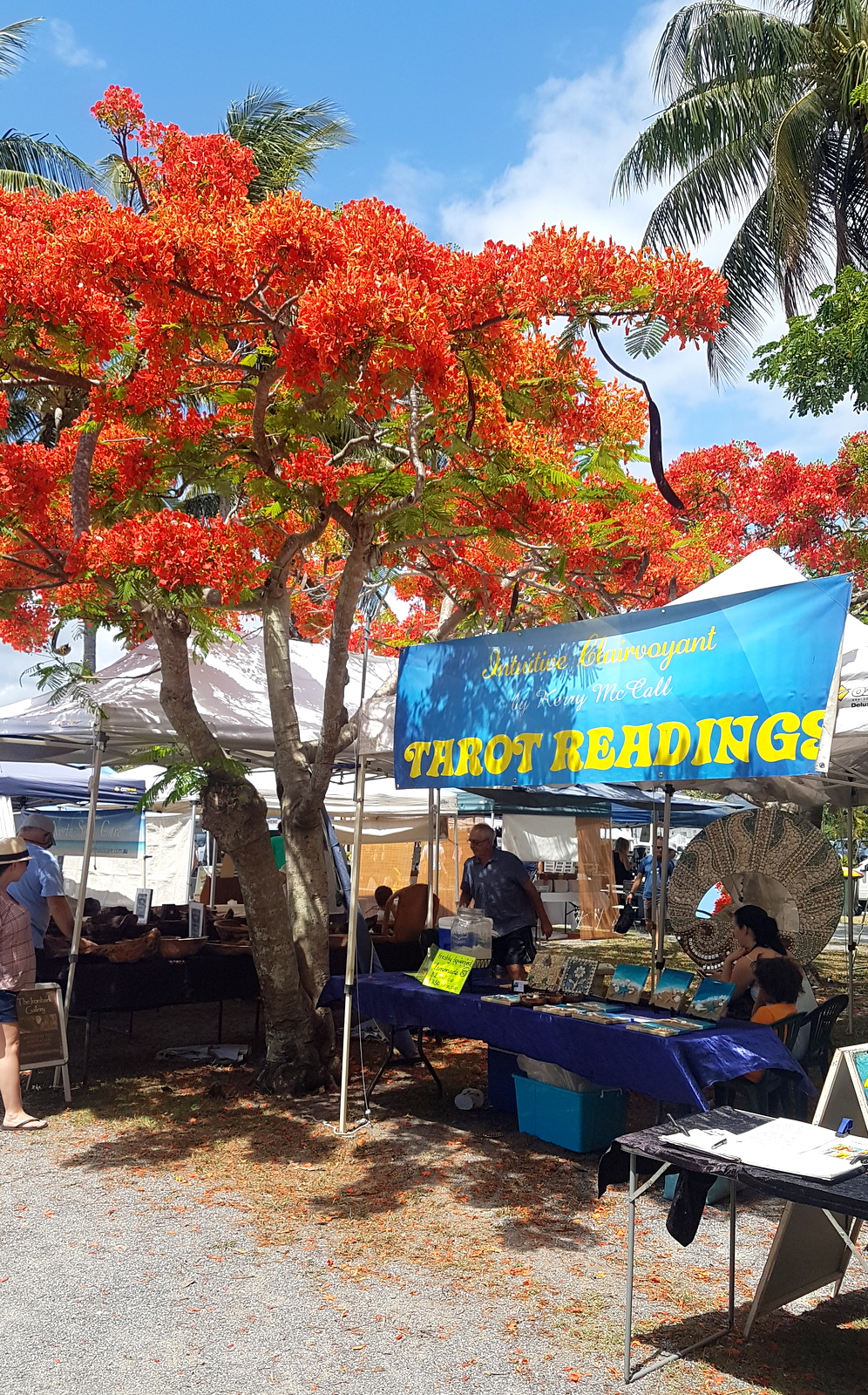 Tous les dimanches matin à Anzac park. De 8h00 à 13h30. Idéalement situé en bord de mer sous les flamboyants en fleurs.