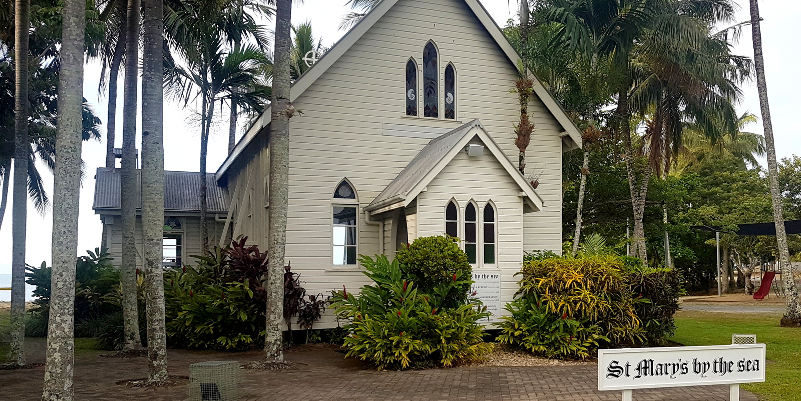 – Juste à côté du marché, il y a la chapelle ST MARY BY THE SEA qui est un des plus vieux buildings de Port Douglas.