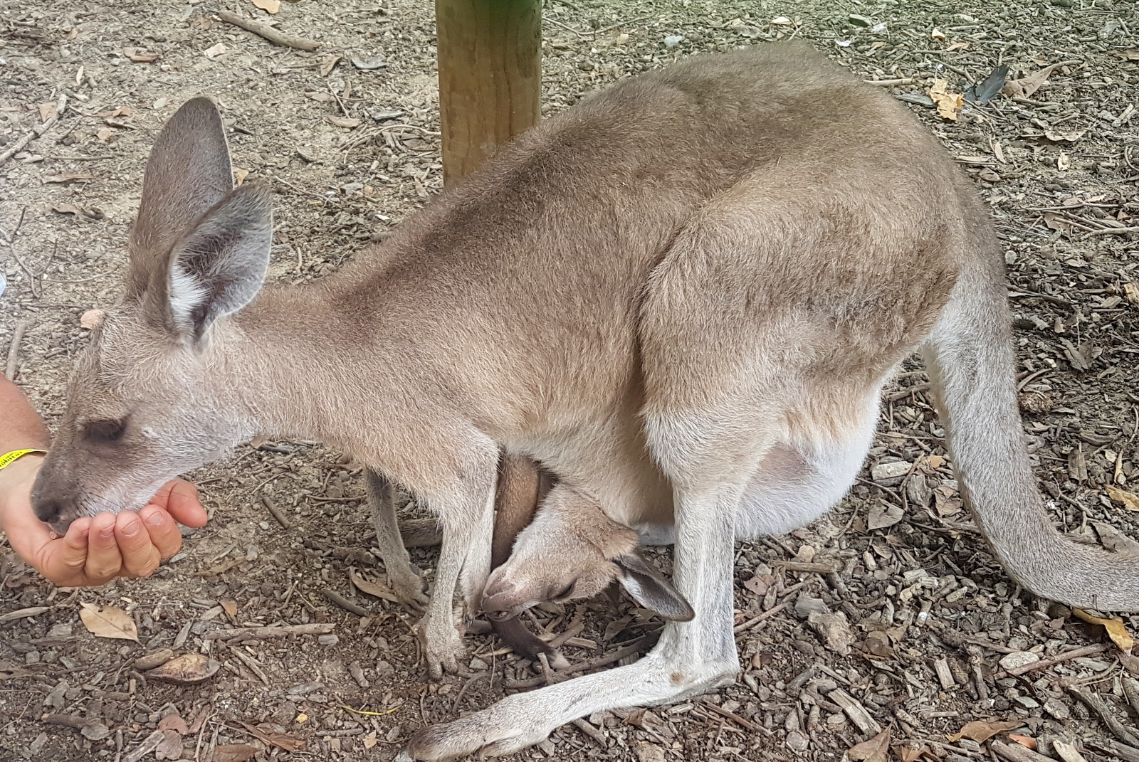 Pour avoir une approche avec tous ces animaux australiens que je voyais pour la première fois et avoir une telle proximité avec eux, j’ai apprécié ce parc. De très nombreux animaux se promènent en liberté au milieu des visiteurs. Les kangourous (dont les mères avec les bébés dans les poches), les émeus, les pélicans viennent vous voir et se faire caresser sans crainte… Et ce sera une des rares occasions où on pourra observer un casoar !!!