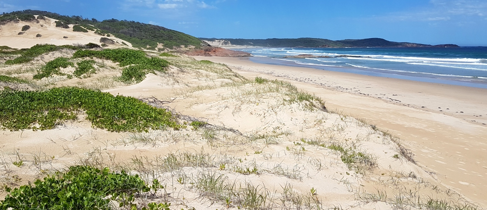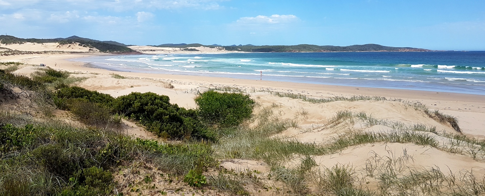 À certains endroits des 32 kilomètres de sable quasi désertique de la Stockton Beach, on peut même perdre de vue la mer et avoir l’impression d’être plus dans un désert de sable que sur une plage…