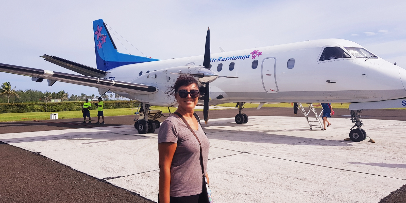 Les vols sont effectués en SAAB 340, un avion de 34 places configuré d’une rangée à gauche de sièges individuels et de doubles sièges à droite. Comme il y a une attribution de sièges, pour avoir la meilleure vue sur Aitutaki en descente, il vaut mieux être installé sur la gauche (les sièges en A) et à droite pour le retour sur Rarotonga, forcément..