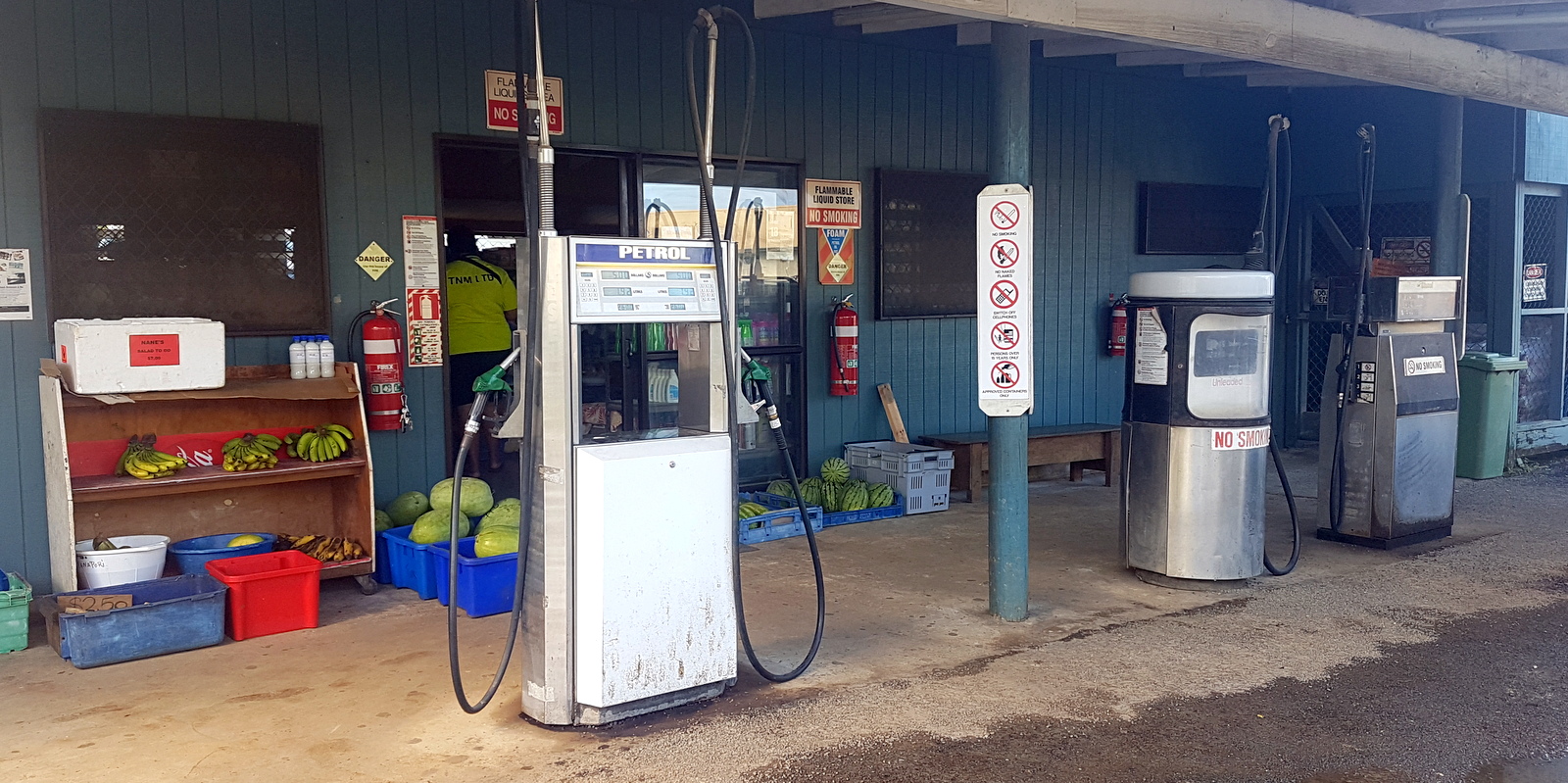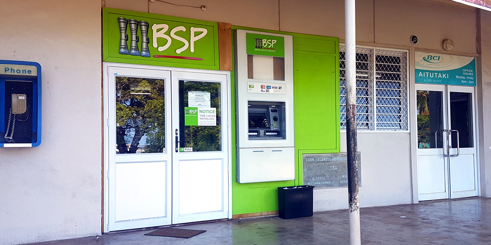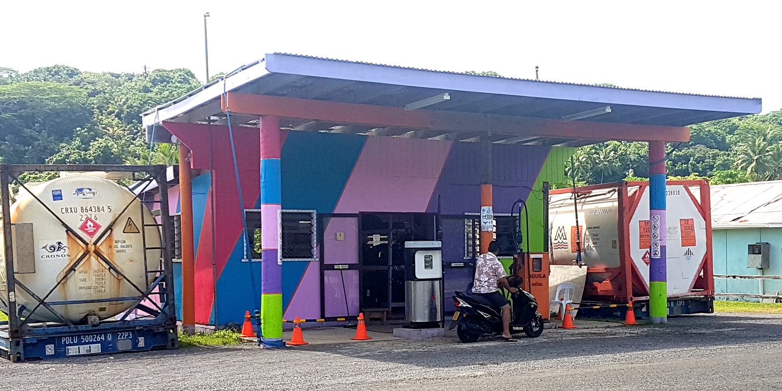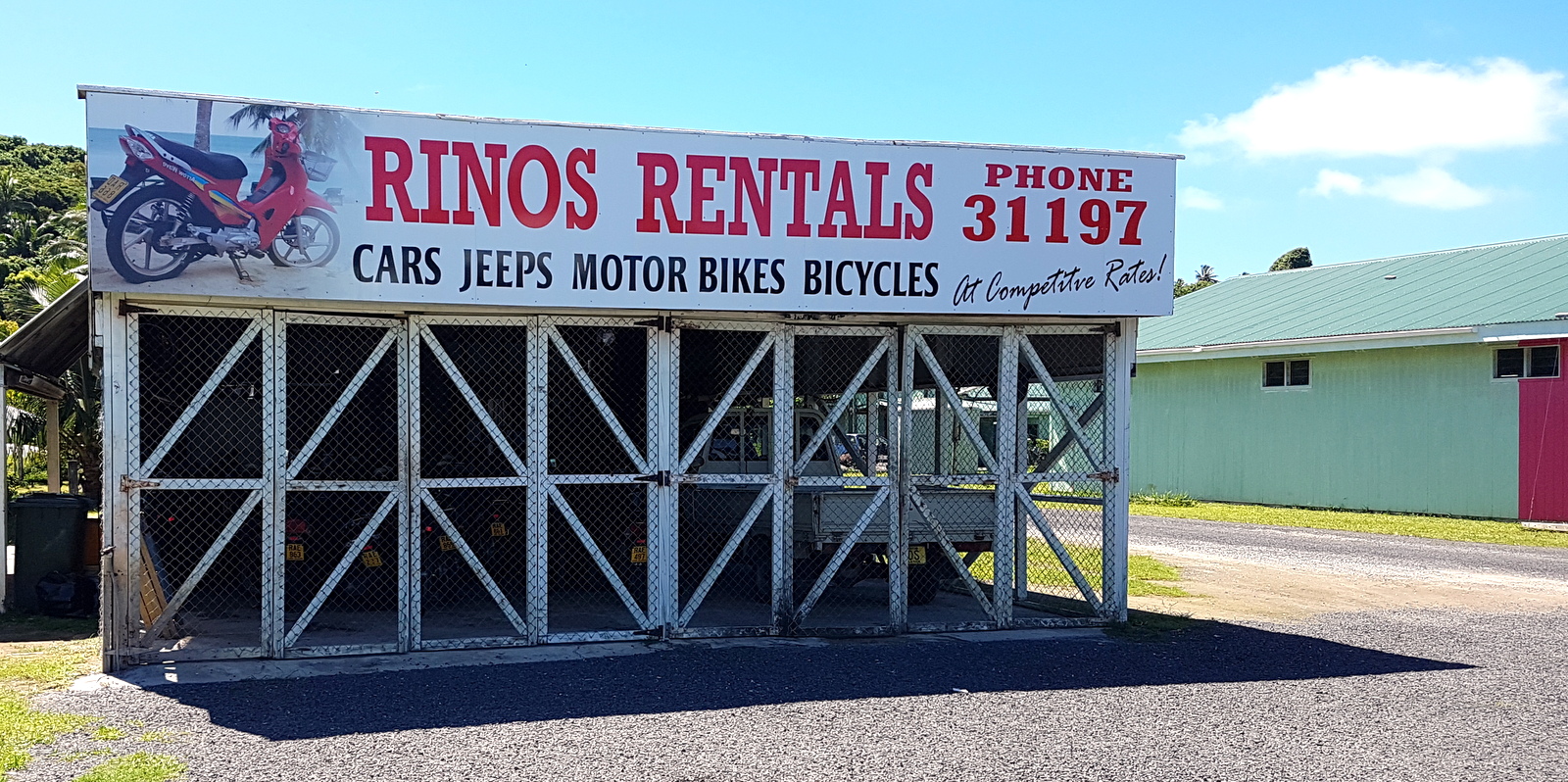 Ensuite, il y a 2 boutiques (une épicerie générale et un magasin de bricolage) et une station essence AQUILA (la 3 ème sur Aitutaki) facilement reconnaissables avec leurs façades colorées.