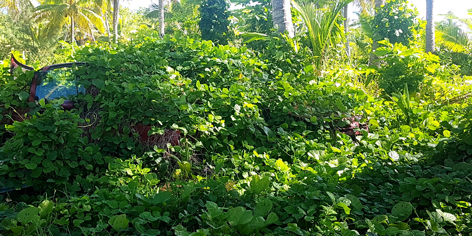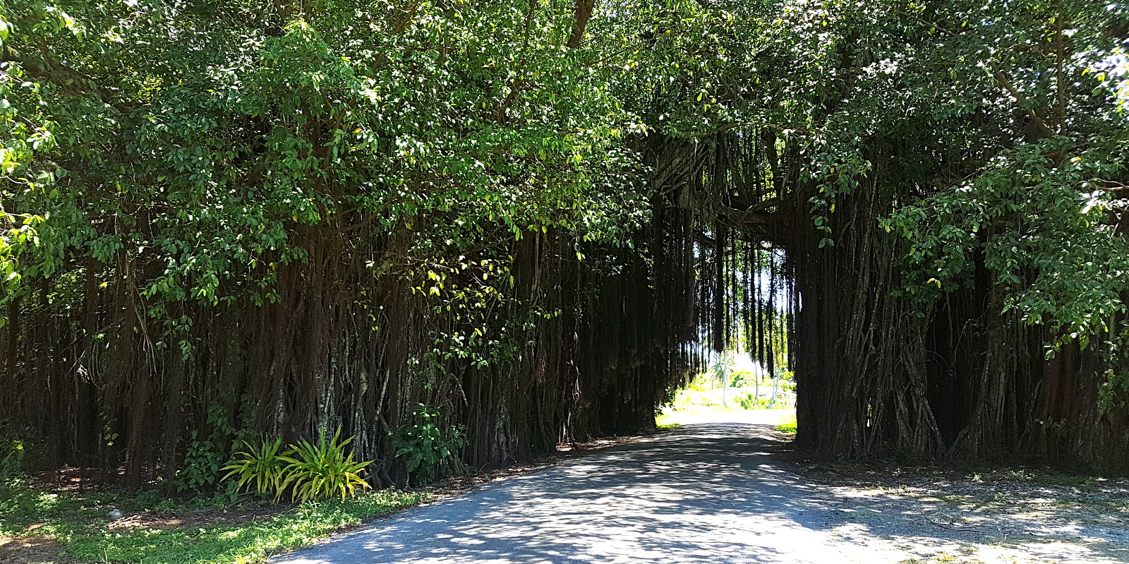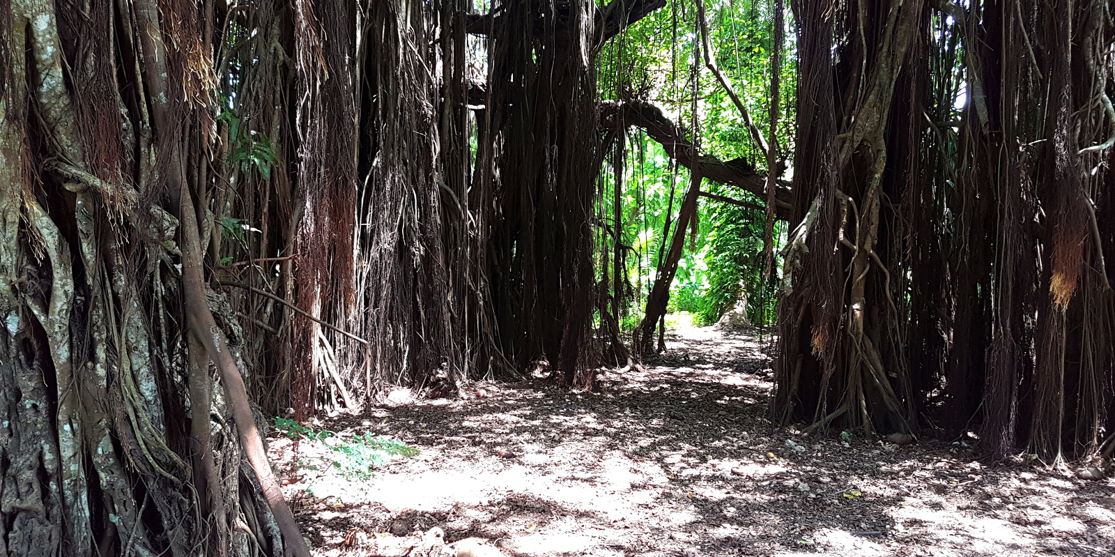 En remontant par la route centrale, dans le district de Tautu, on a la surprise de passer sous un immense tunnel de lianes…