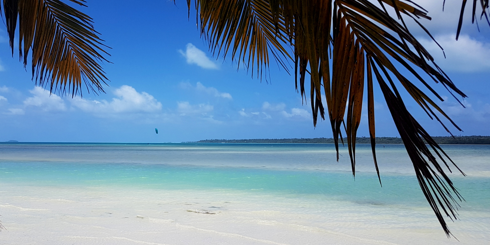 On quitte la presqu’île avec regret (heureusement qu’on y revient bientôt), on longe l’aéroport sur la droite, un marécage et une station essence sur la gauche et au lieu de tourner à gauche vers la ville, on continue tout droit direction le golf. La plage est différente à cet endroit car de nombreuses patates de corail émergent sur un beau fond bleu lui donnant un aspect presque irréel…