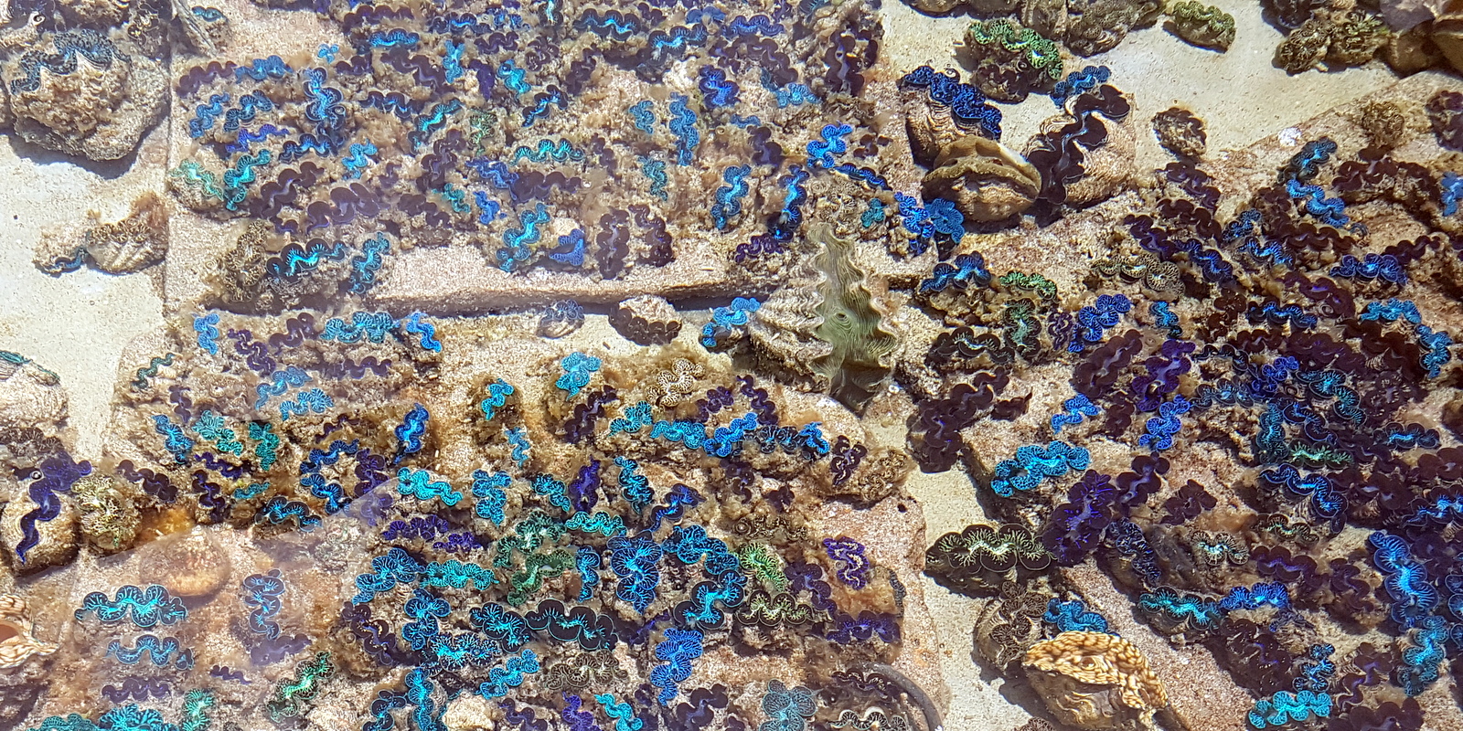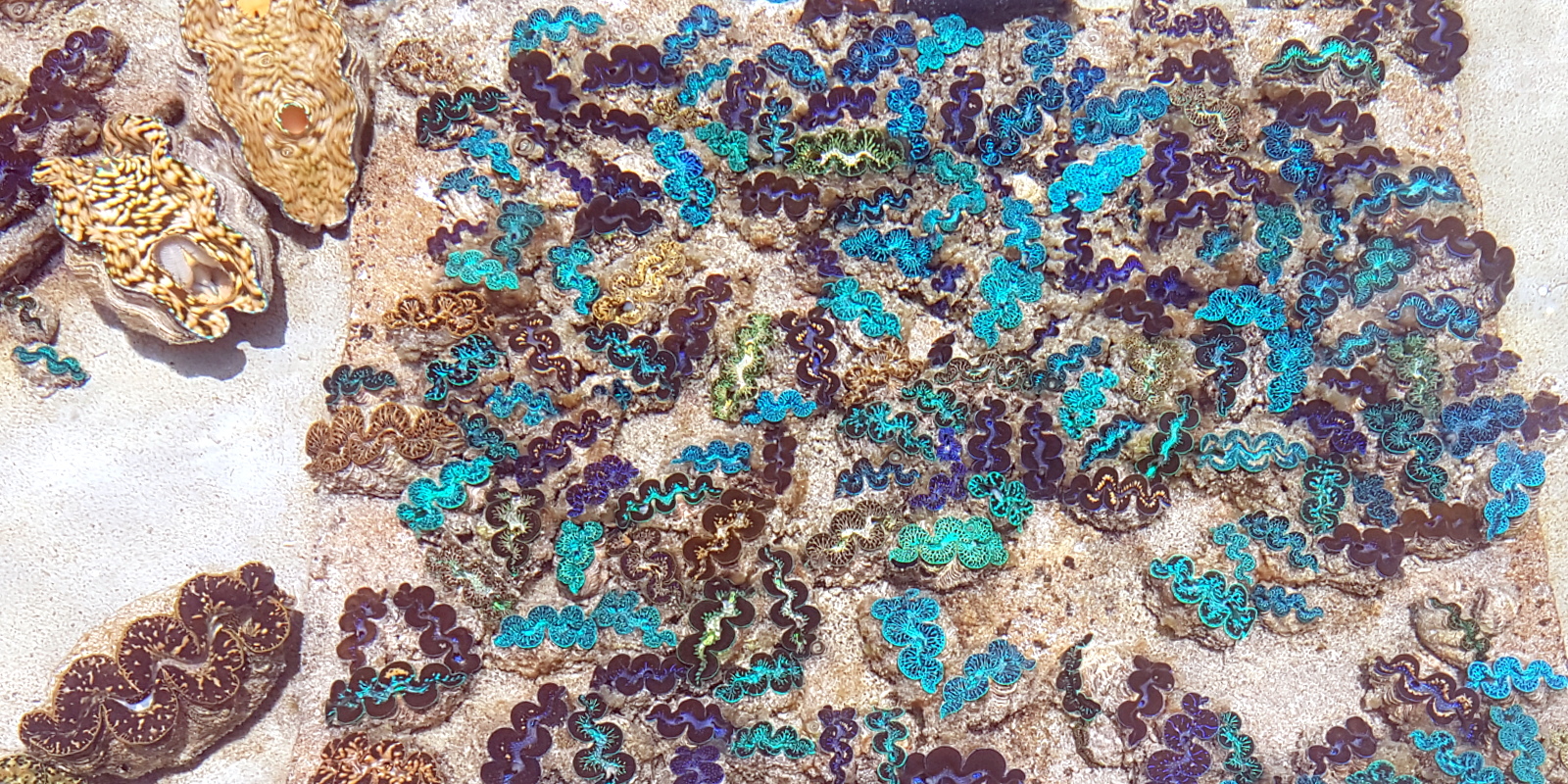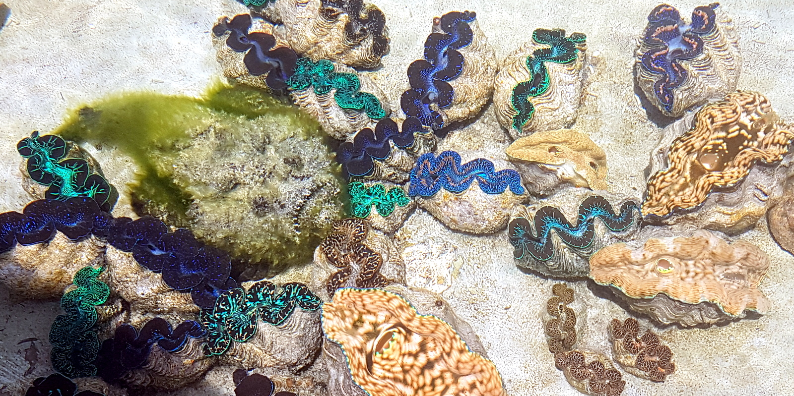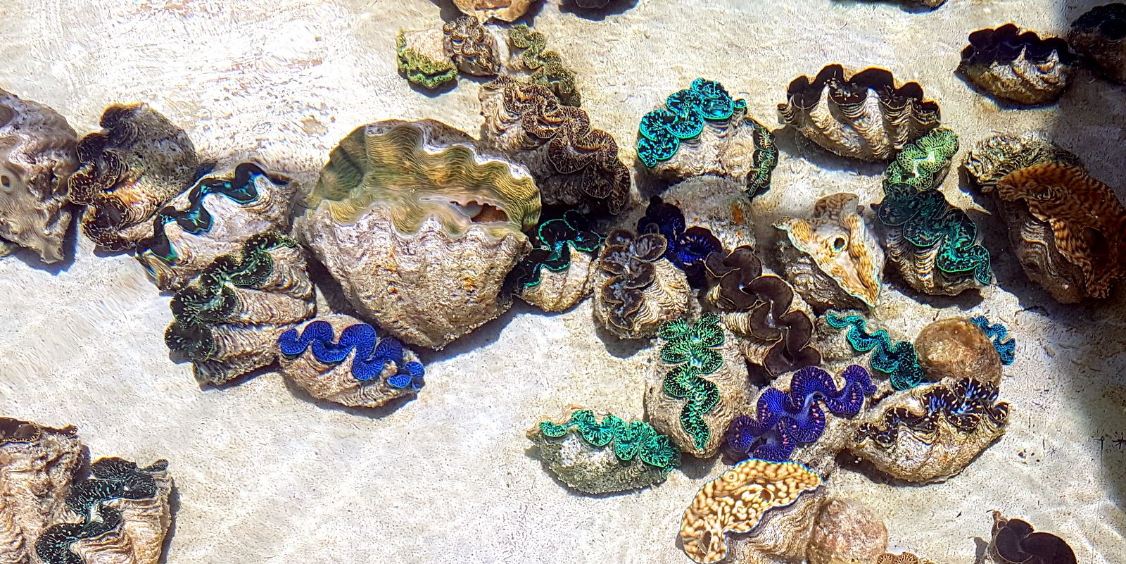 Non, les photos ci-dessous ne représentent pas un rayon de bijoux mais bien toutes les différentes couleurs que peuvent arborer les bénitiers, magnifique, non? Un intrus s’est glissé parmi eux, saurez vous le reconnaître?