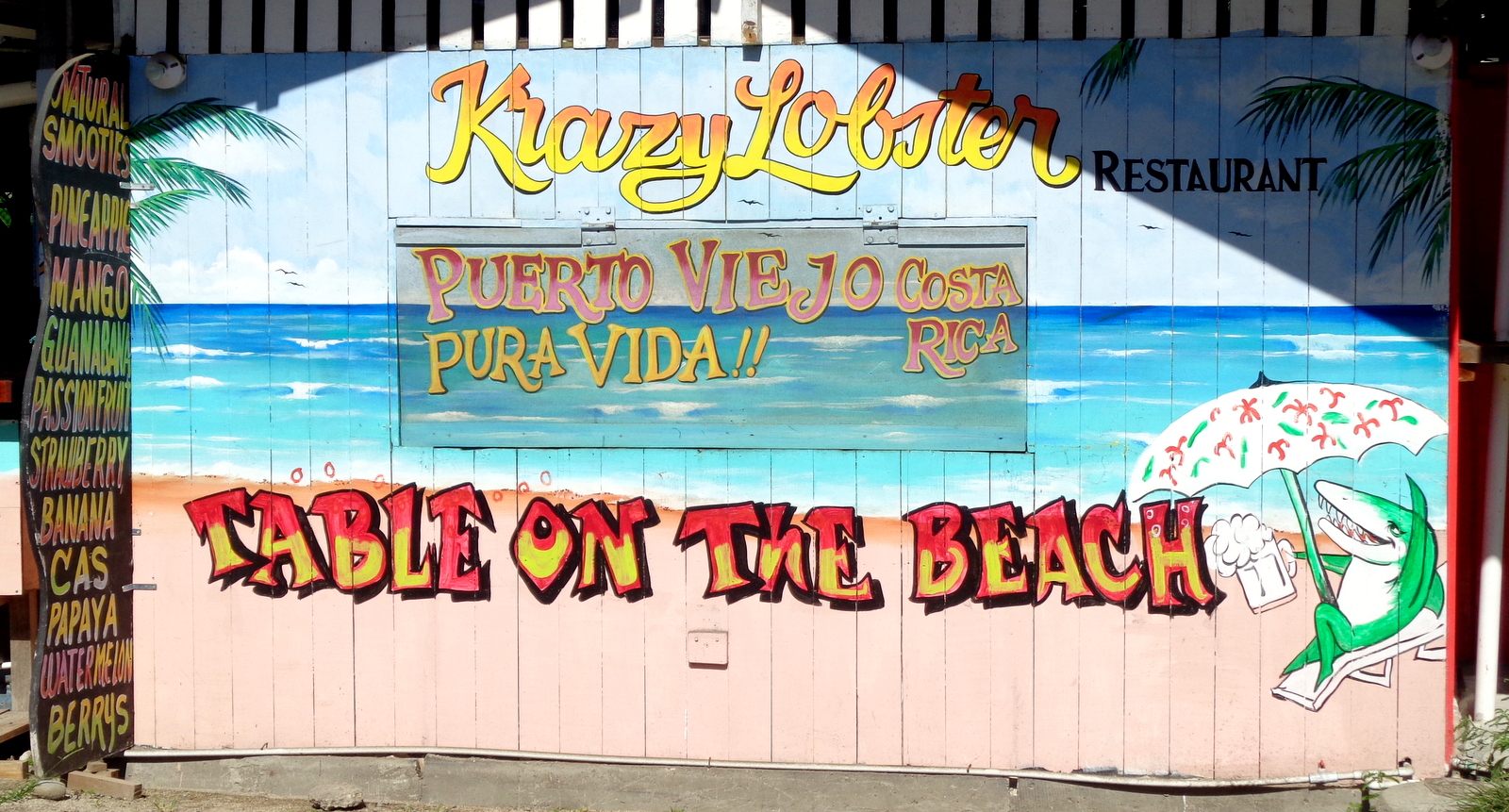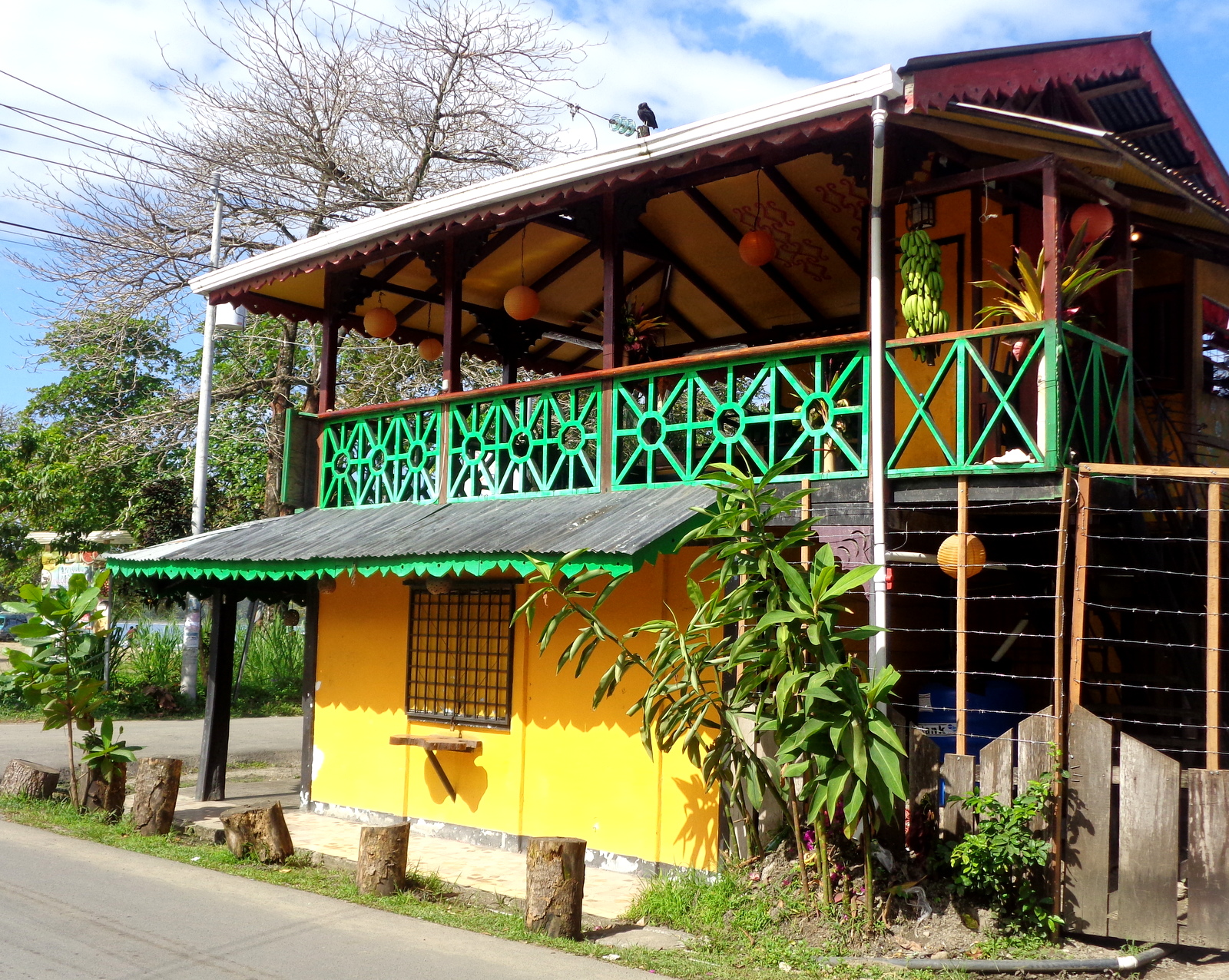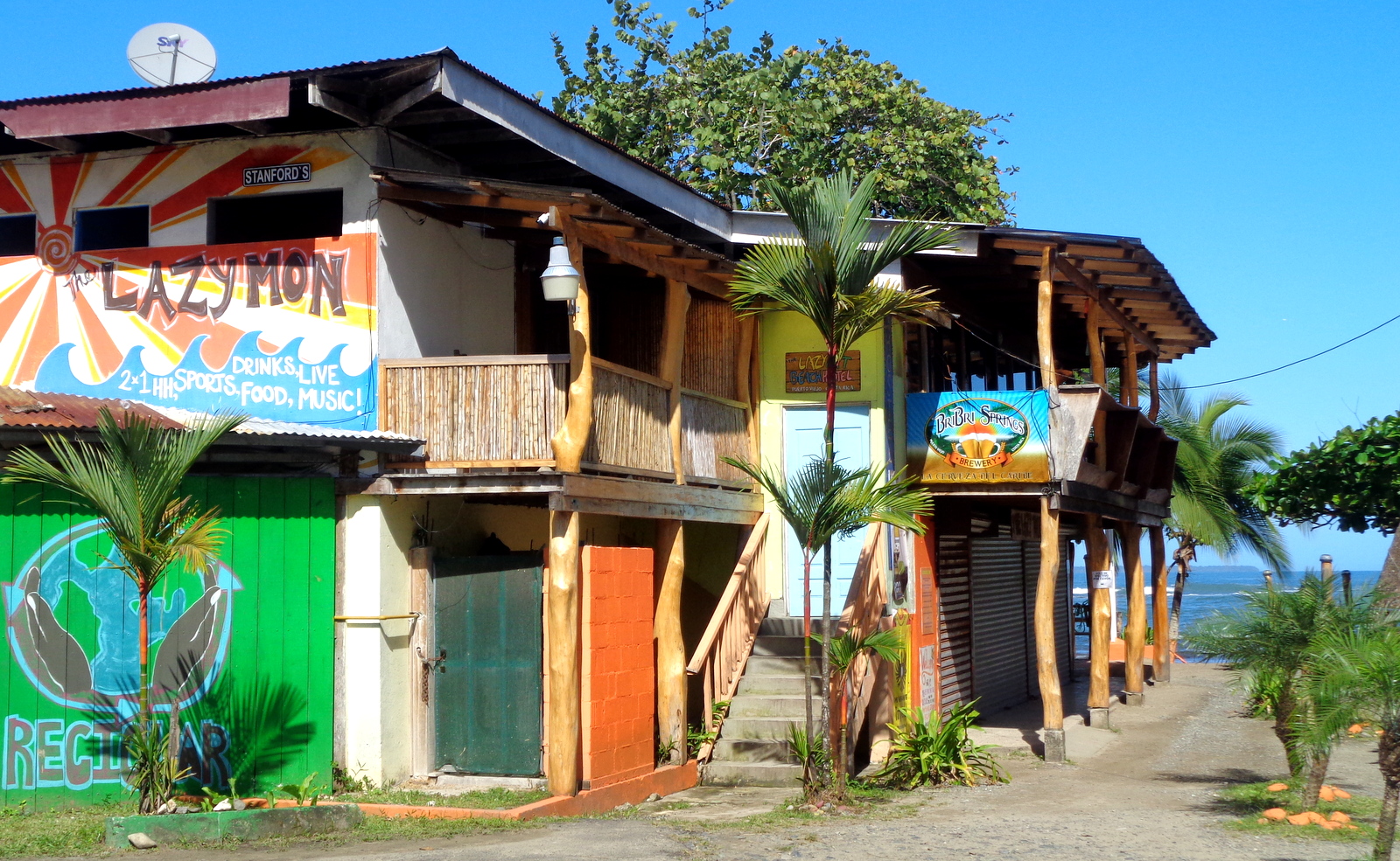 Dès l’arrivée à Puerto Viejo, on est agréablement surpris par l’ambiance Caribéenne avec ses jolies maisons colorées en bois, la température: 33°C et l’ambiance plage et vacances qu’y s’en dégage !!!