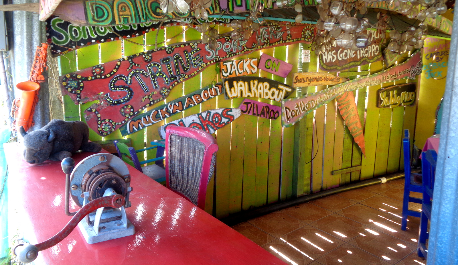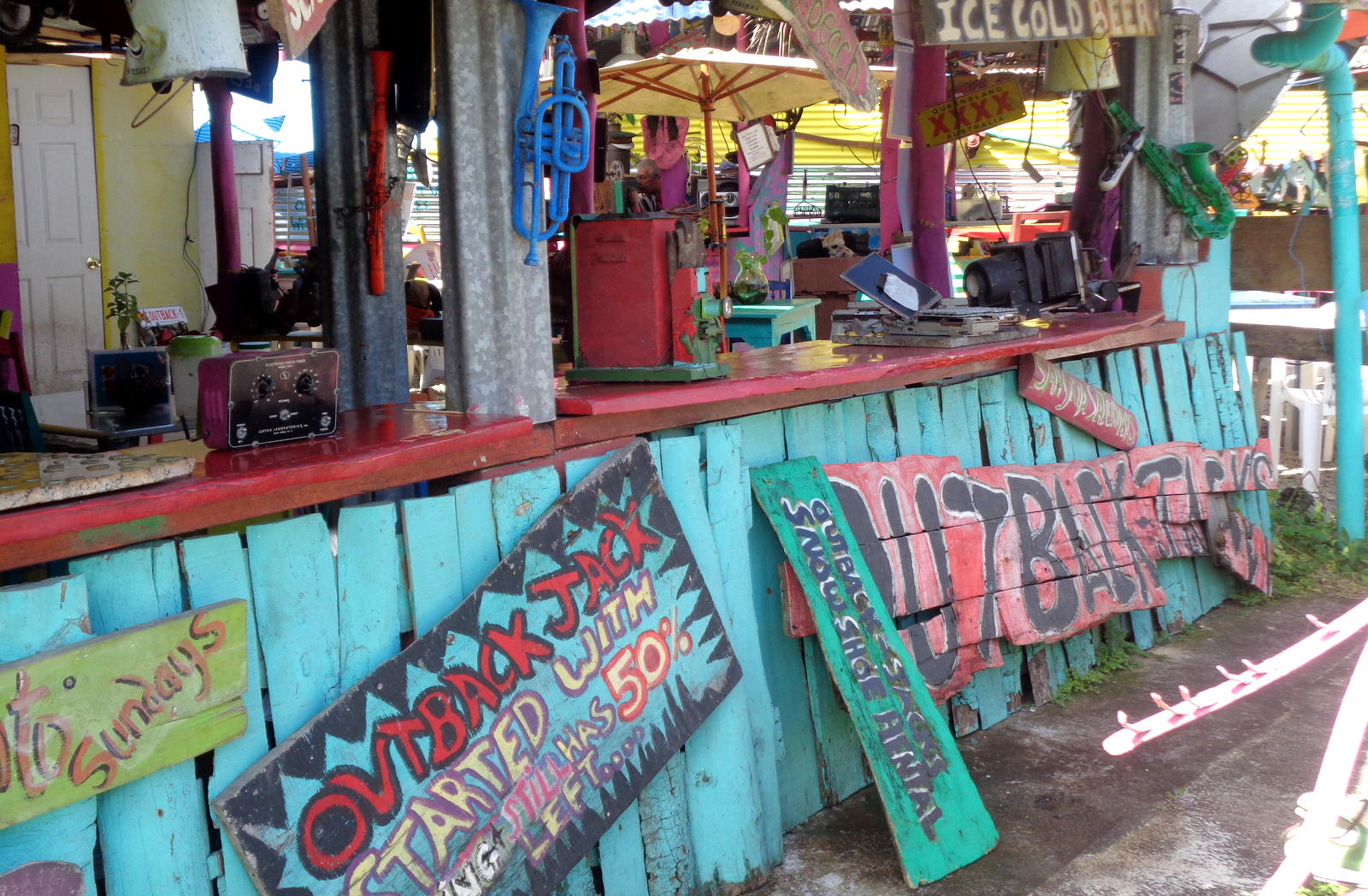 1) l’OUTBACK JACK’S sur la calle 213, non loin de l’arrêt de bus. On ne peut pas le louper avec sa déco incroyable et colorée, faite de tout et de rien… C’est un bric à brac de plein de choses complètement improbables et qui a un charme fou. On peut y manger plutôt style américain, notamment de délicieuses ribs…