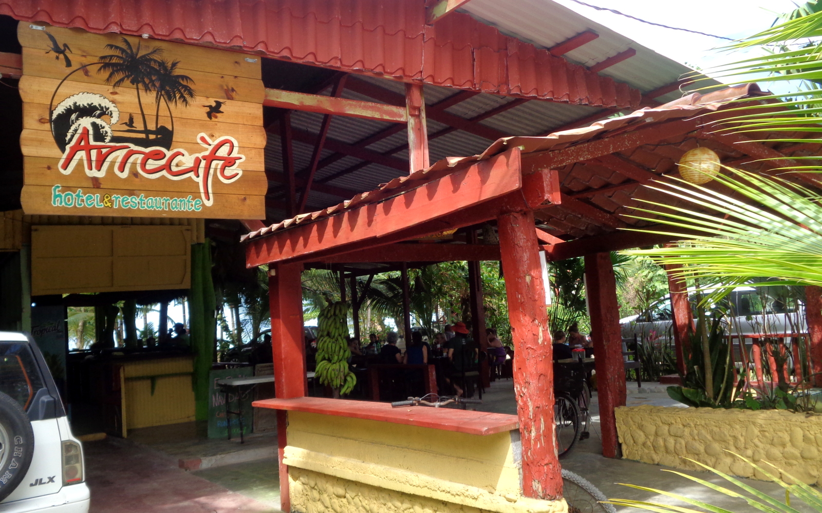 On cherche un endroit pour déjeuner, pas facile en semaine… et on tombe par hasard sur le restaurant ARRECIFE  sur la plage d’Uva, serveuse adorable, excellents jus de fruits frais et délicieux ceviches… exactement ce qu’on cherchait… Ils louent également de très jolis bungalows… On nous a dit que le samedi, ils font un barbecue de langoustes cuites sur des noix de coco… A vérifier mais surtout à recommander…