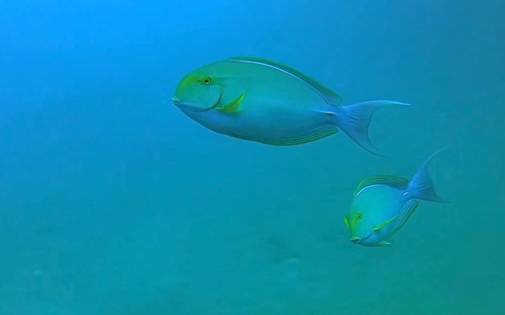 L’éloignement de ce site des deux passes de Tahaa fait que l’eau est cristalline. Une clarté qui peut atteindre 40 ou 50 mètres. Tao-tao est encore très sauvage, la pêche peu fréquente. De grosses perches, nasons, napoléons, bécunes, barracudas … peuplent ces lieux. Nous avons fait de belles rencontres comme de gros requins citrons, thons et espadons. Rajoutons à cela que le corail est particulièrement joli. Accessibles à tous niveaux.