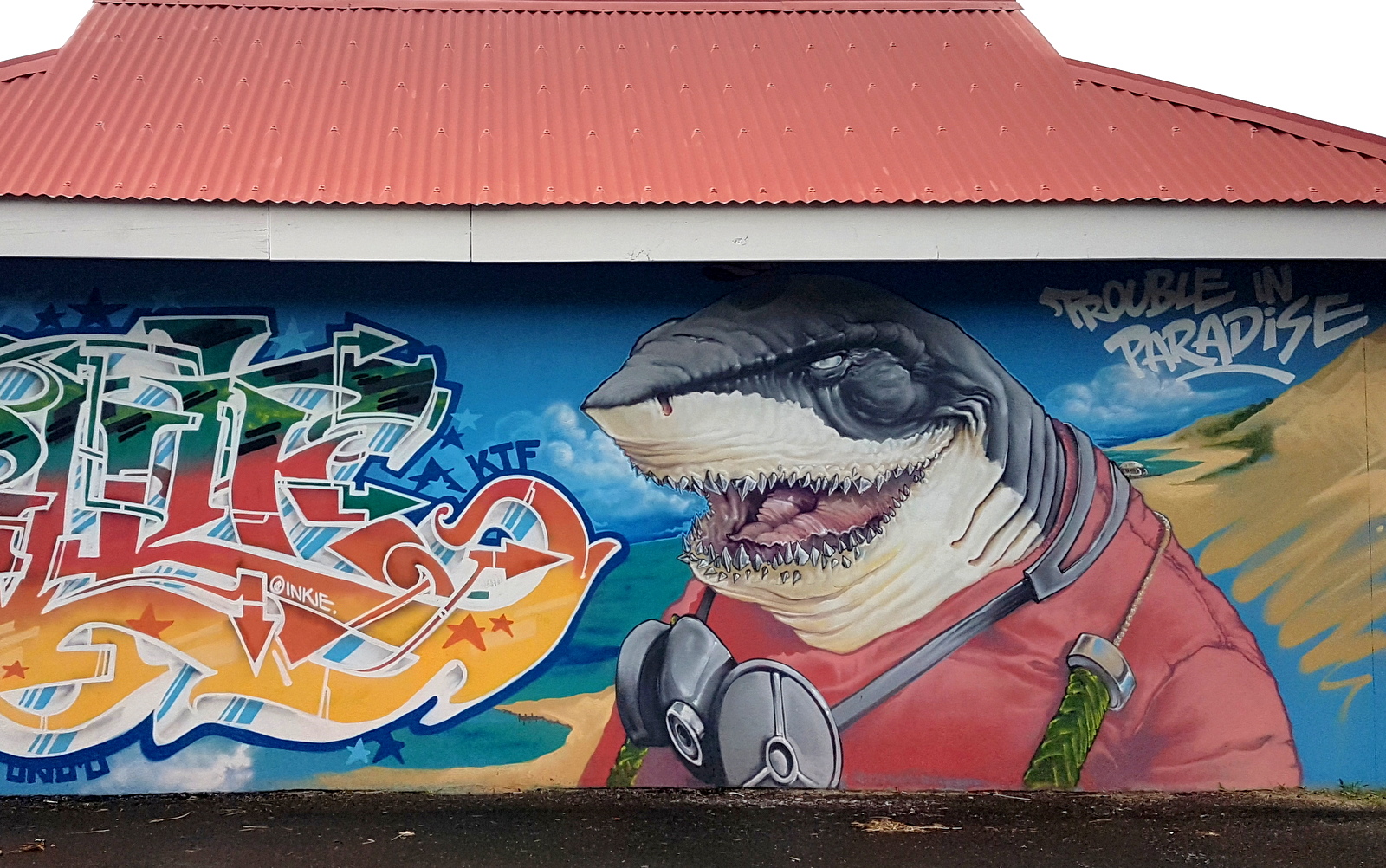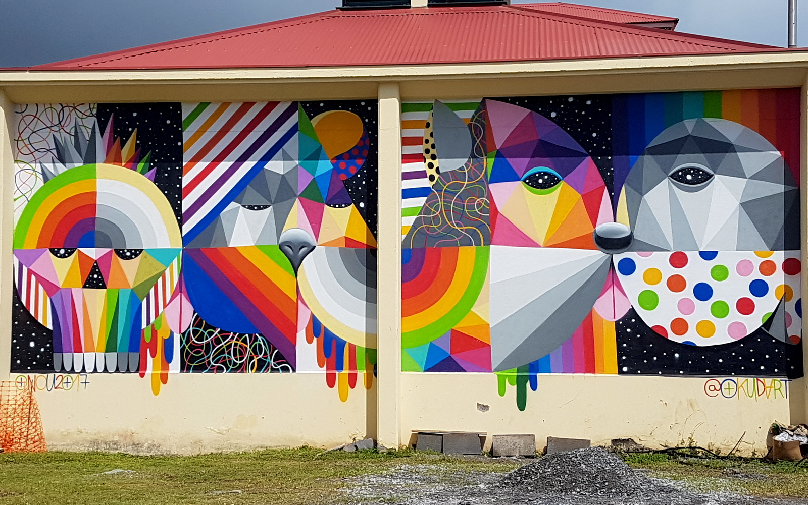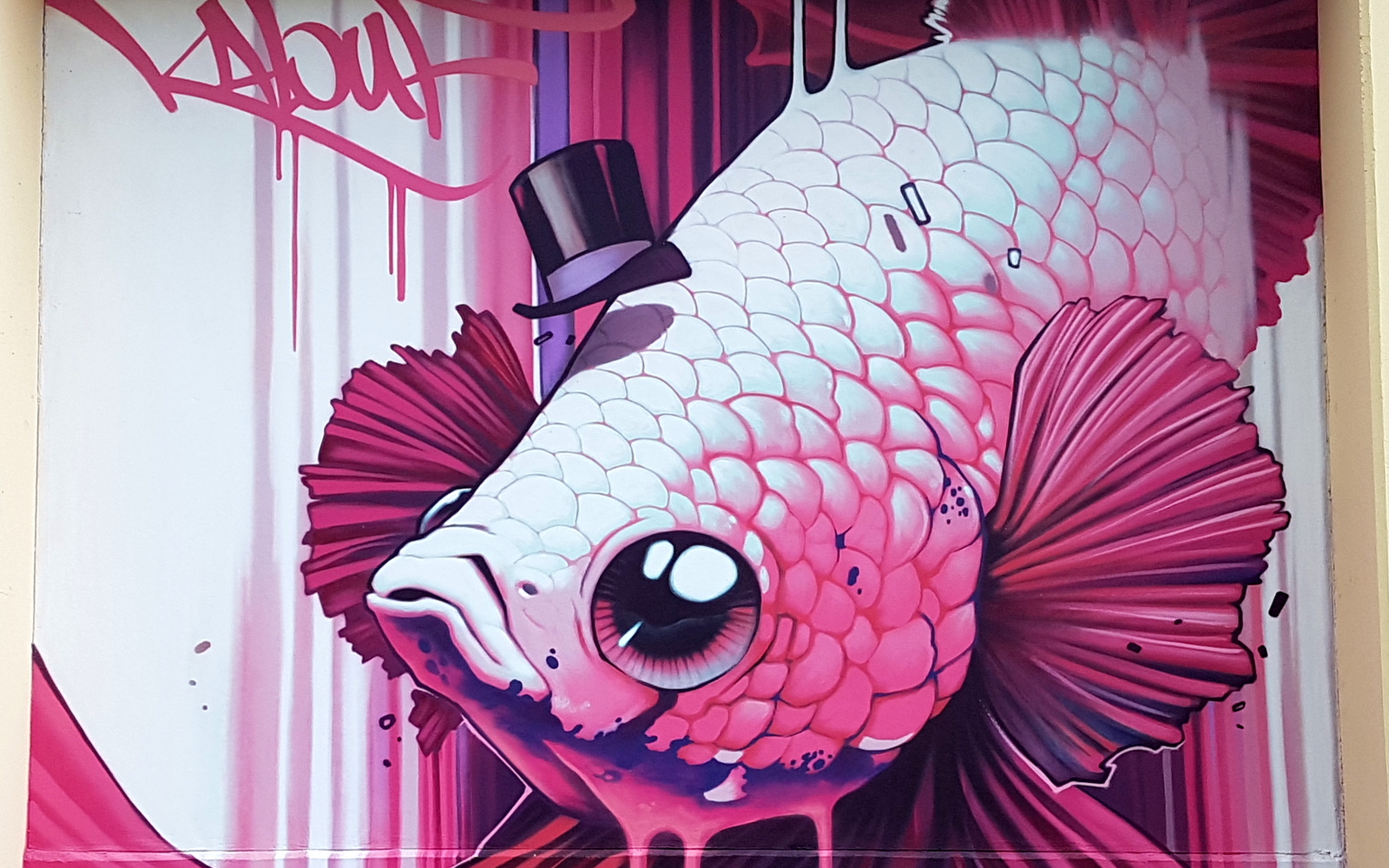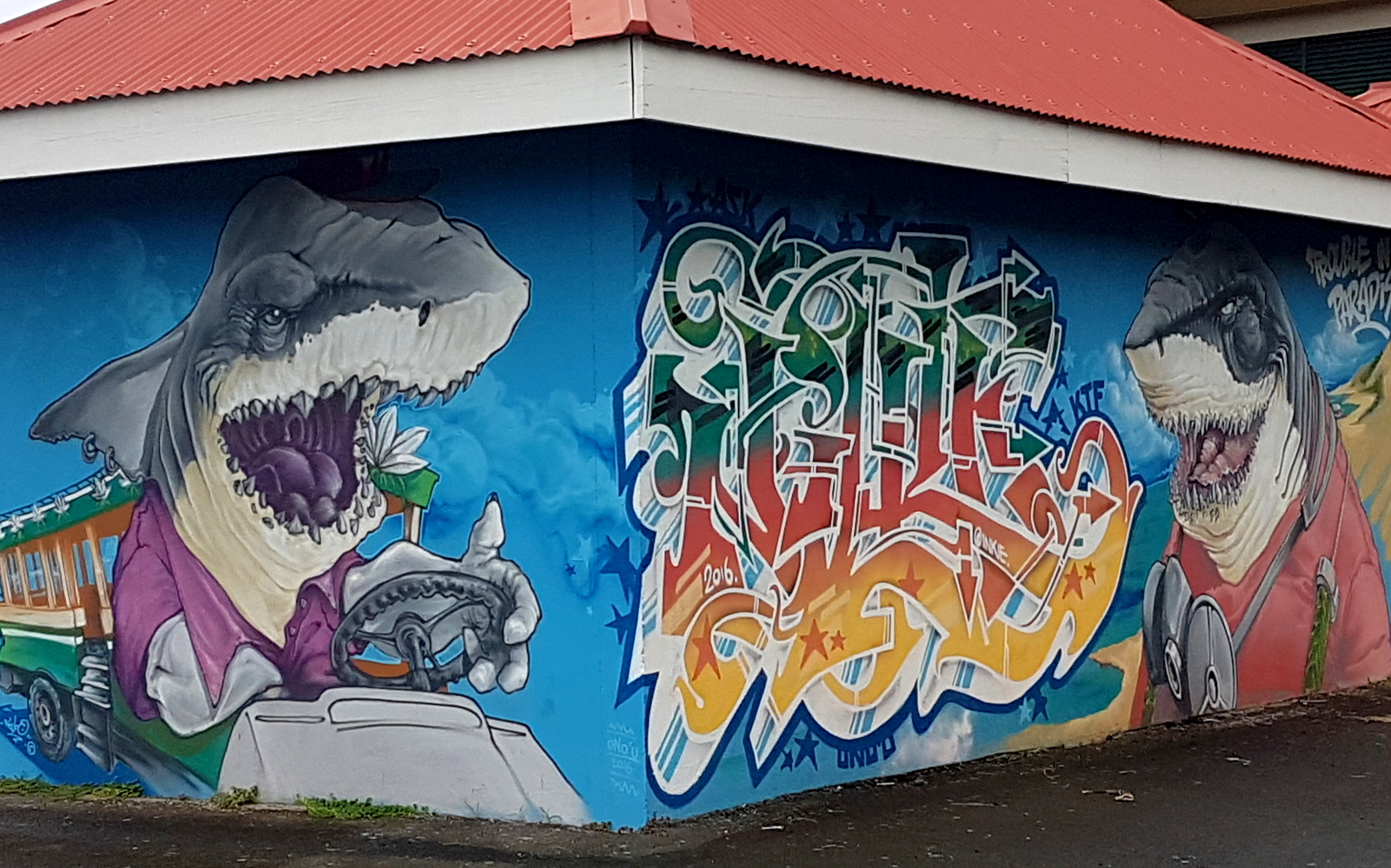 Depuis peu, le festival de street art de Papeete s’est déplacé jusqu’à Uturoa et on peut y voir de belles fresques comme « La Polynésienne » qui fait face à la fresque du navigateur Viliamu Tupaia derrière le magasin Champion, « Les Félins », le « Pink Fish » entre autres…