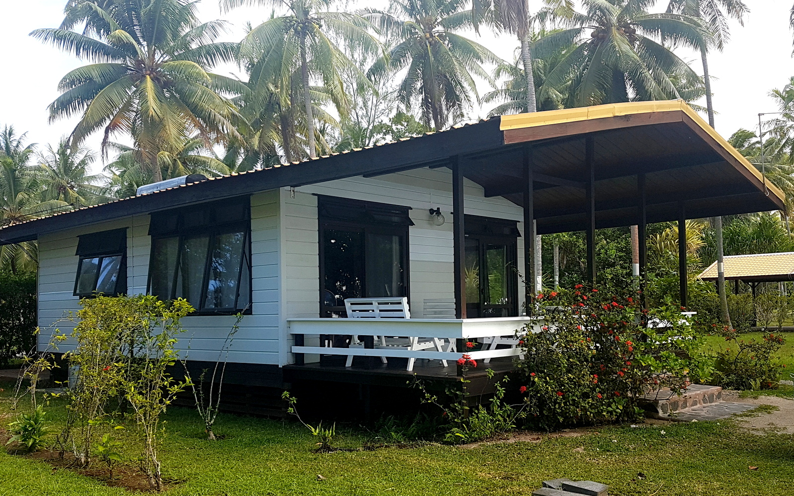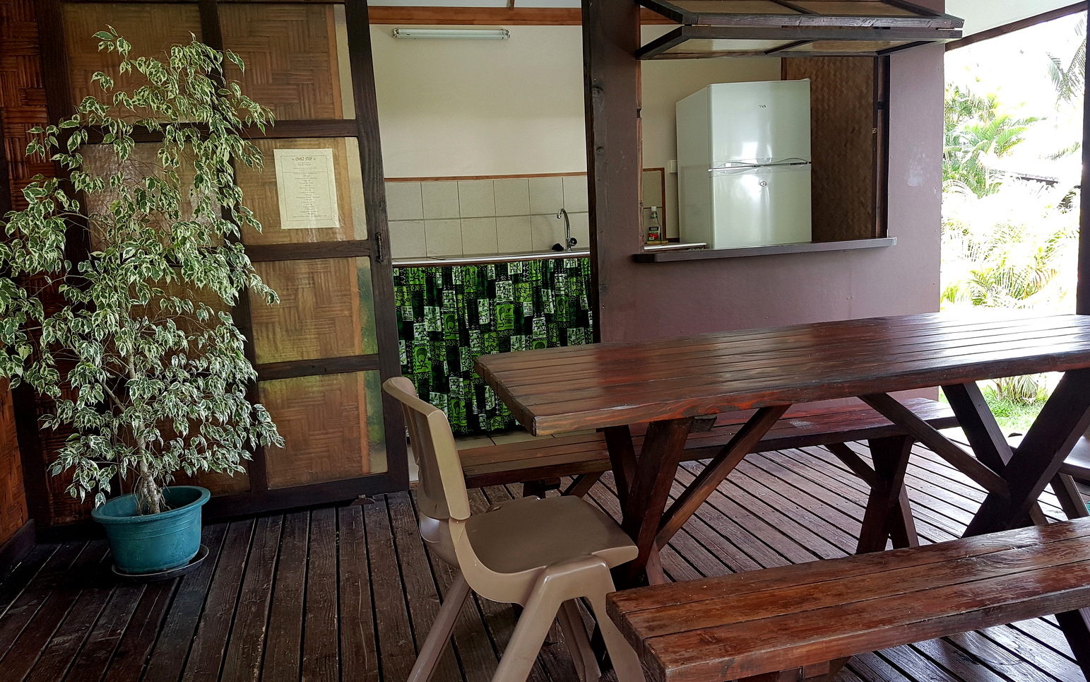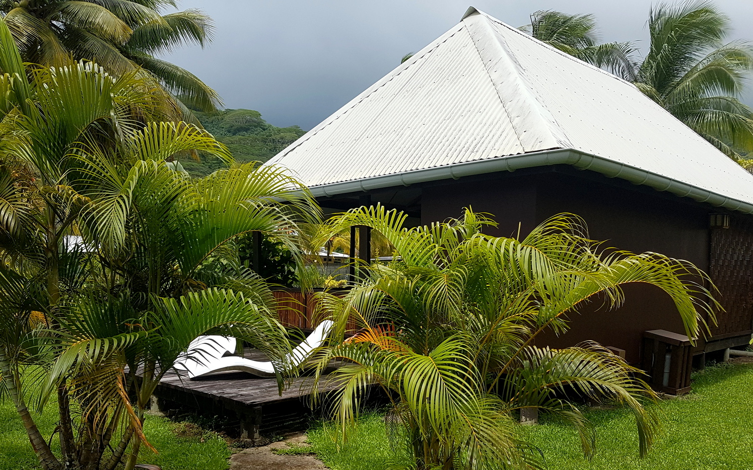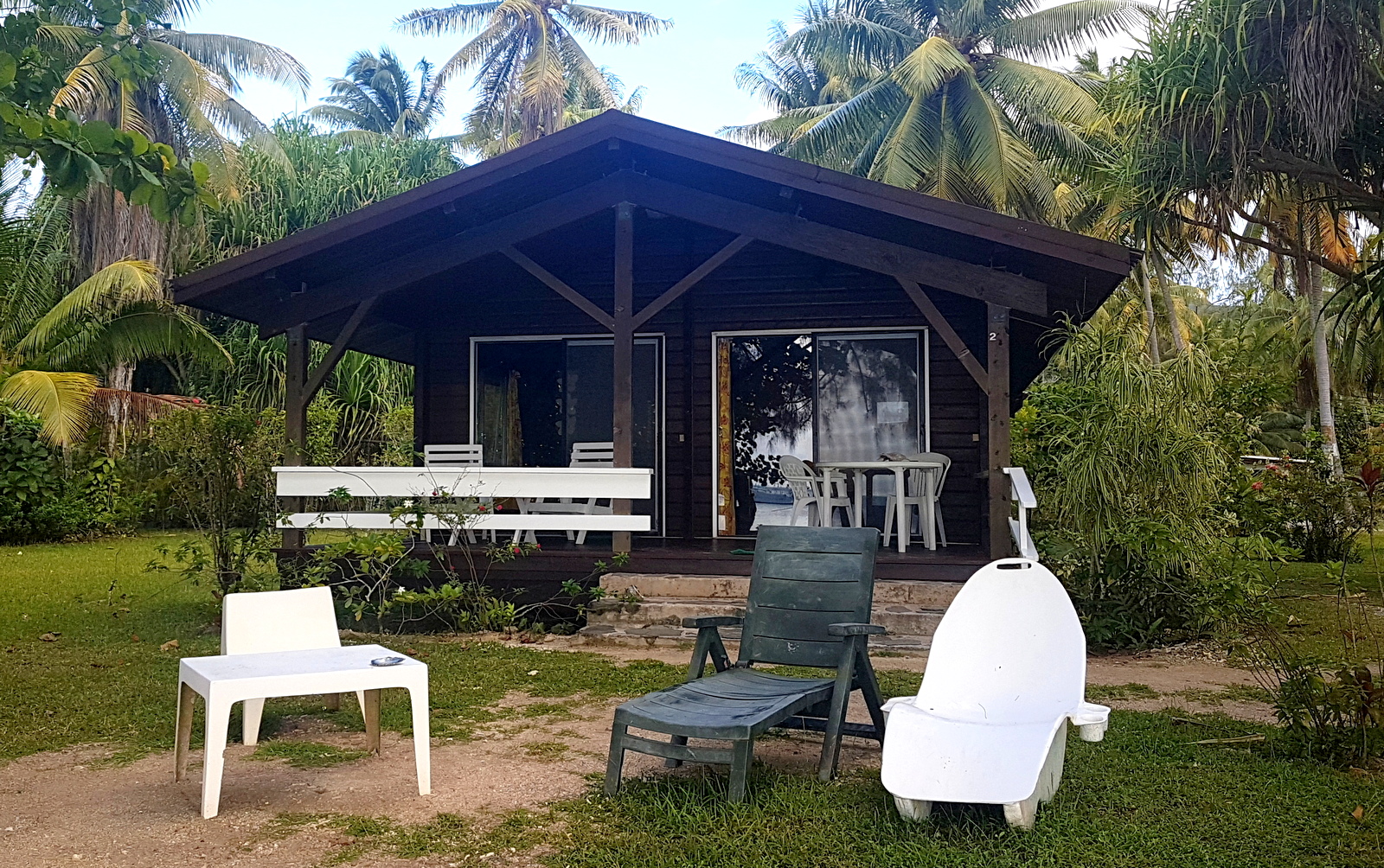 22 bungalows répartis dans une cocoteraie en bord de mer dont 11 sont réservés en longue durée. Ils sont grands et peuvent loger jusqu’à 5 personnes. 14 000 CFP (117€) le bungalow pour 2 personnes, entre 120 000 et 180 000 CFP (1000-1500€) au mois en fonction de l’emplacement. On peut aussi y camper en apportant sa propre tente au tarif de 1550 CFP (13€) par personne. Comme son nom l’indique, on peut y admirer le coucher du soleil le soir…Très demandé, il faut réserver bien en avance. Attention, il n’y a internet qu’au niveau de la réception…