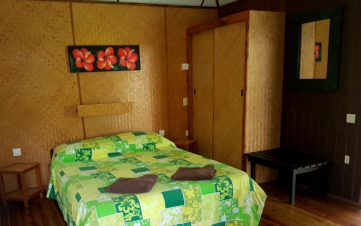 Proche de la pension MANAVA, juste avant en venant d’UTUROA, des bungalows à 9000 et 10 000 CFP (75 et 83€) et des chambres à 7500 CFP (62€). Nous y avons dormi une nuit en dépannage car la PENSION MANAVA était complète.