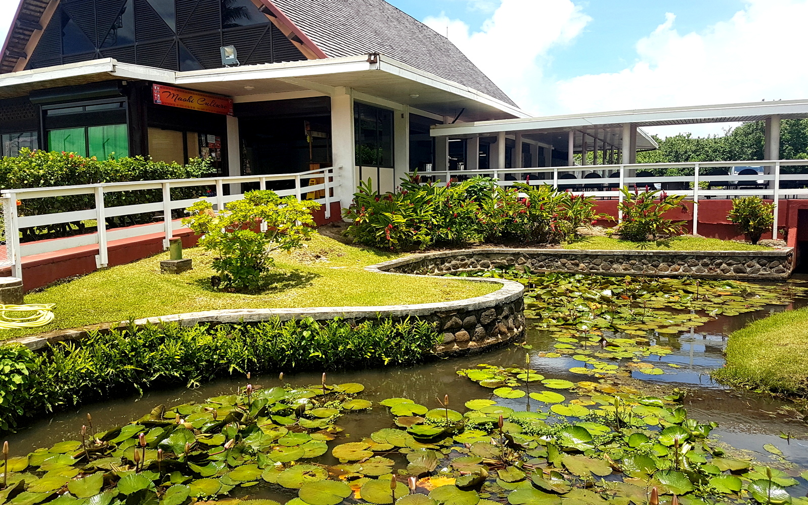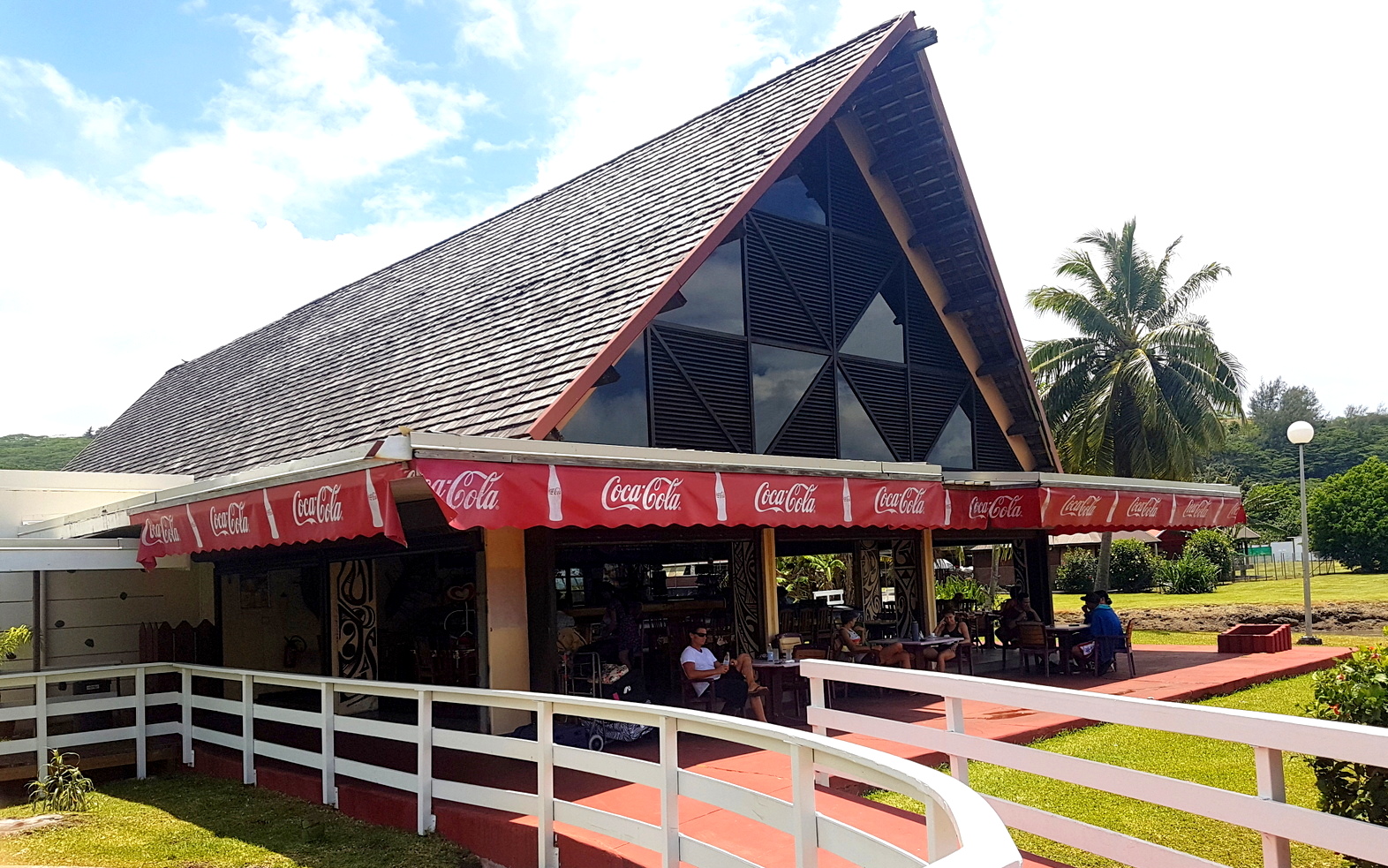 Un peu plus loin que le Raiatea Lodge en venant d’Uturoa, sur la droite en bord de mer. Ouvert de 11h45 à 13h15.