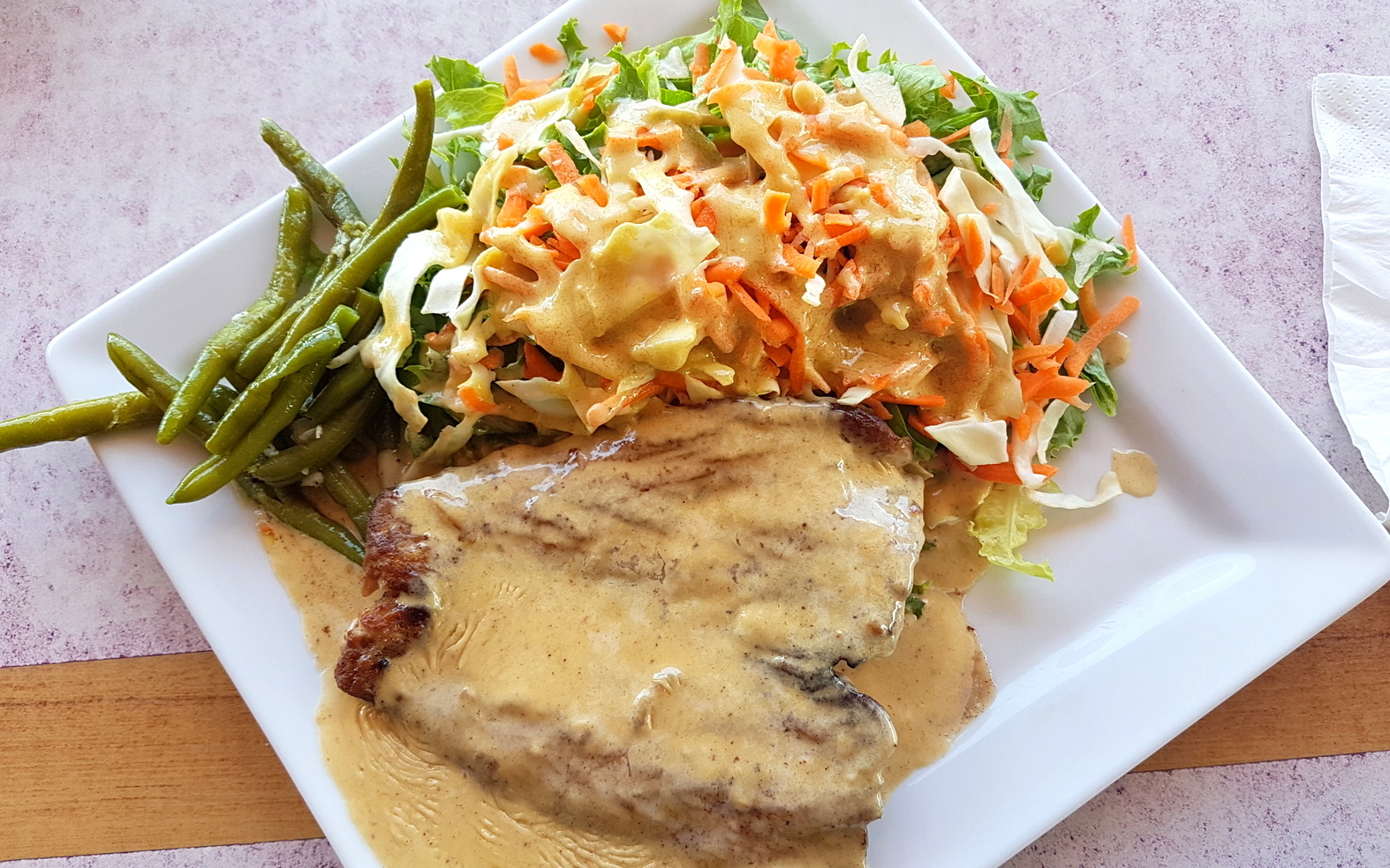 Nous nous sommes régalé d’un mahi-mahi fraîchement pêché sauce vanille à 2300 CFP (19€) même s’il n’est pas très réputé… Prend les cartes de crédit.