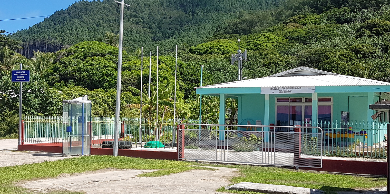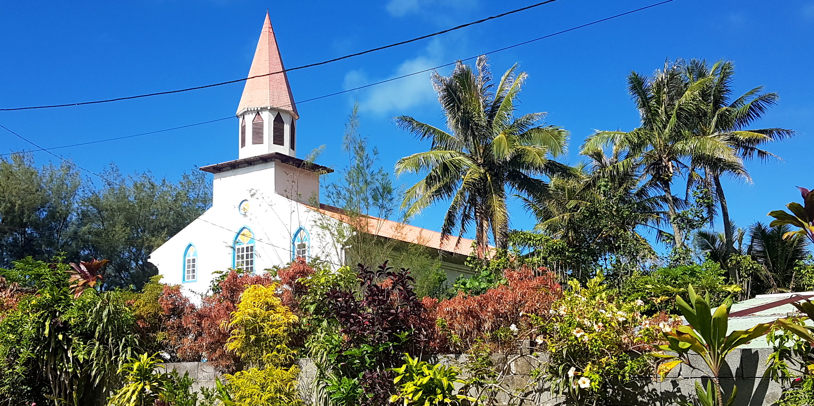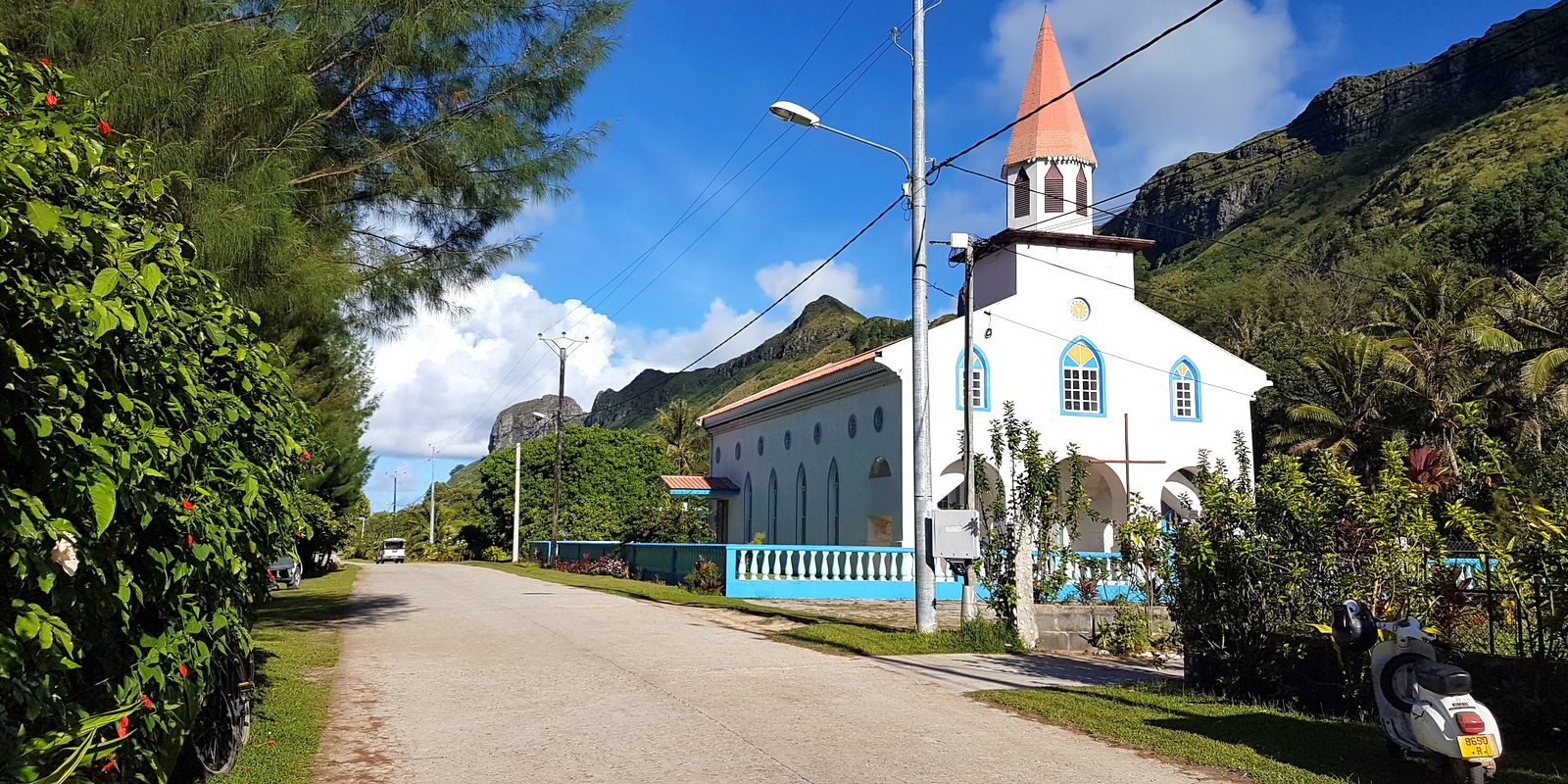 La pension Raivavae Tama est juste à côté d’une église qui est, en fait, un superbe temple protestant blanc et bleu, très photogénique : le Temple de Mahanatoa.