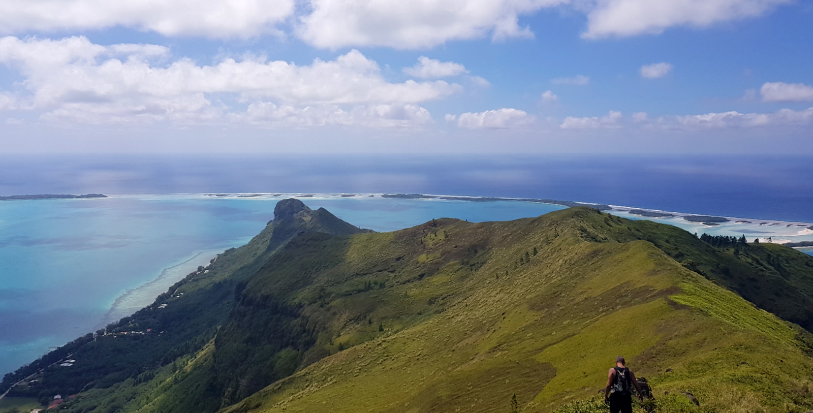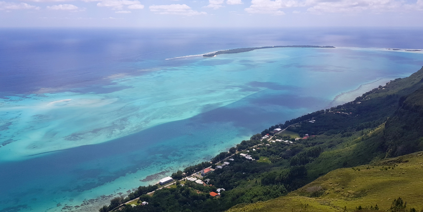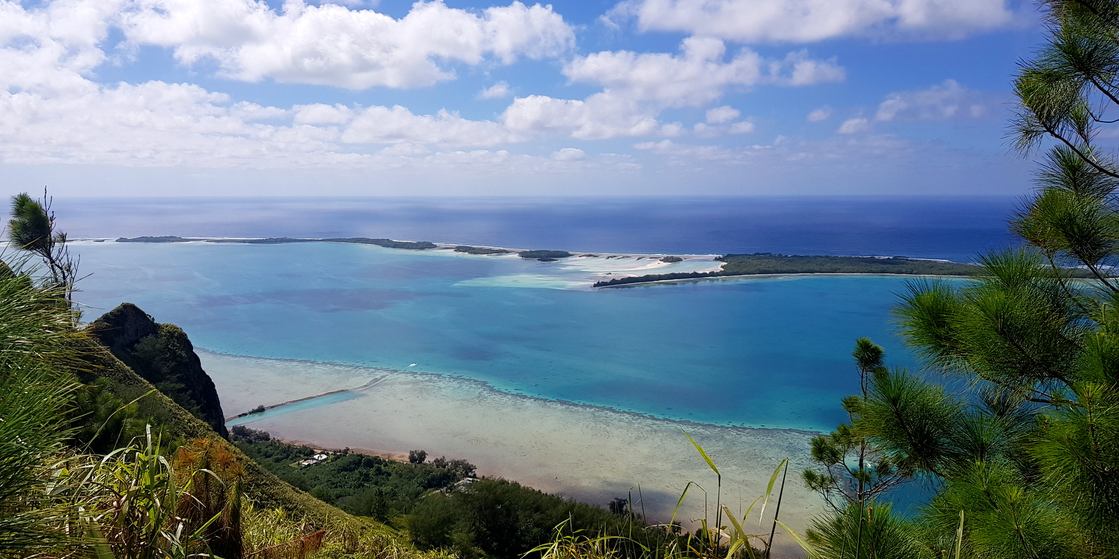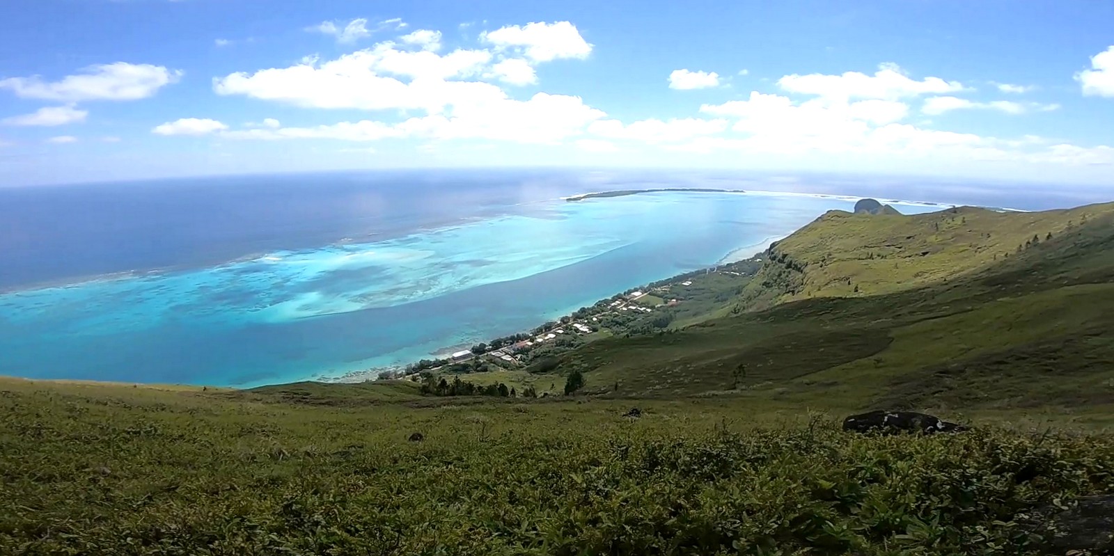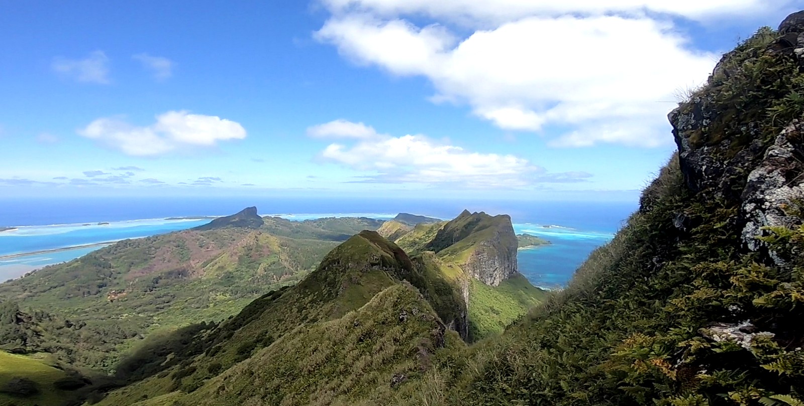 Comme on peut s’y attendre, le panorama est exceptionnel. Au fur et à mesure de la montée, lors des pauses obligatoires pour reprendre son souffle, la vue se dégage petit à petit sur le magnifique lagon qui entoure l’île… et depuis le sommet, on peut en voir l’intégralité sur 360°…Spectaculaire !!!