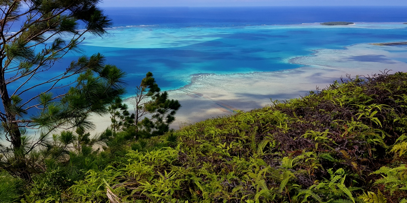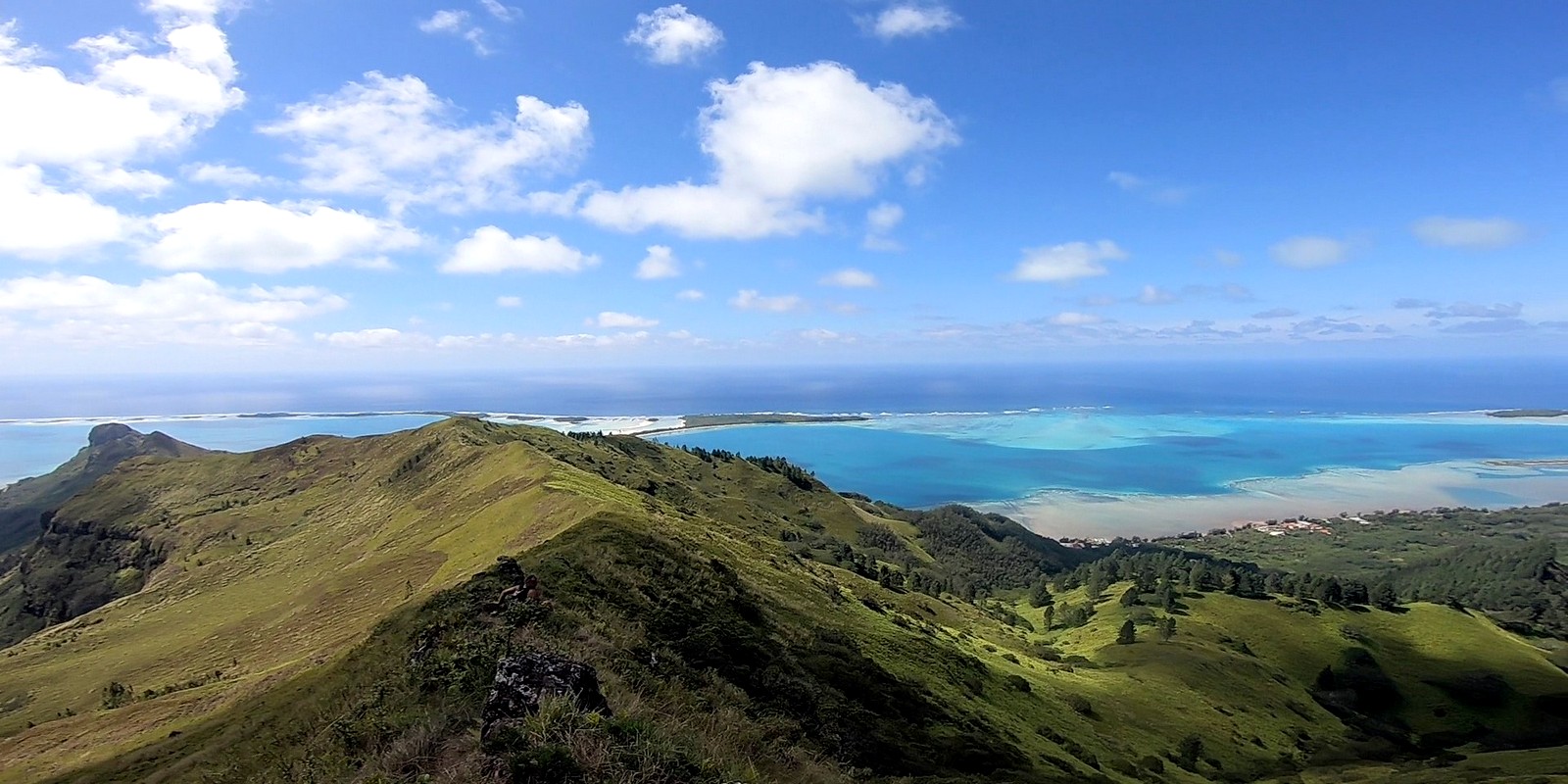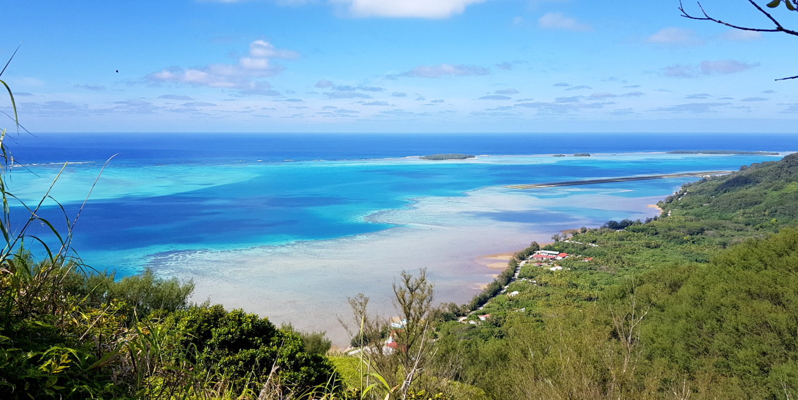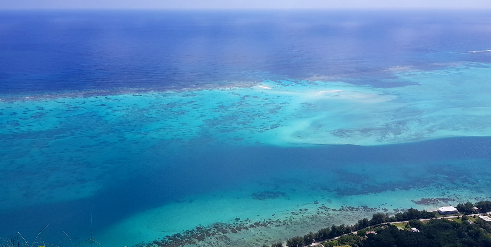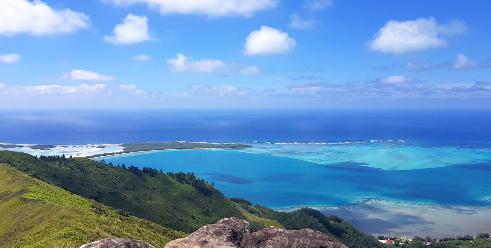 Comme on peut s’y attendre, le panorama est exceptionnel. Au fur et à mesure de la montée, lors des pauses obligatoires pour reprendre son souffle, la vue se dégage petit à petit sur le magnifique lagon qui entoure l’île… et depuis le sommet, on peut en voir l’intégralité sur 360°…Spectaculaire !!!