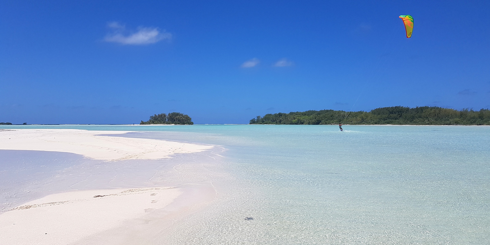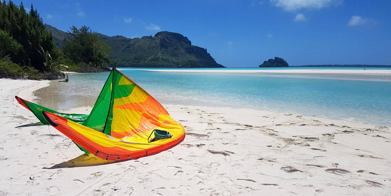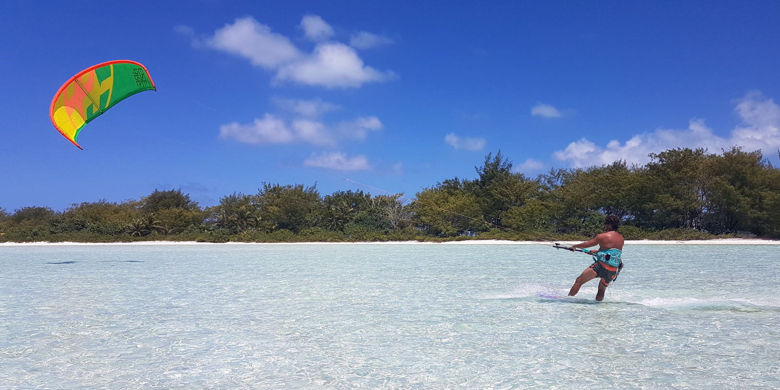 Le motu piscine est également le meilleur spot de l’île pour faire du kitesurf et mon compagnon a donc emporté son matériel.