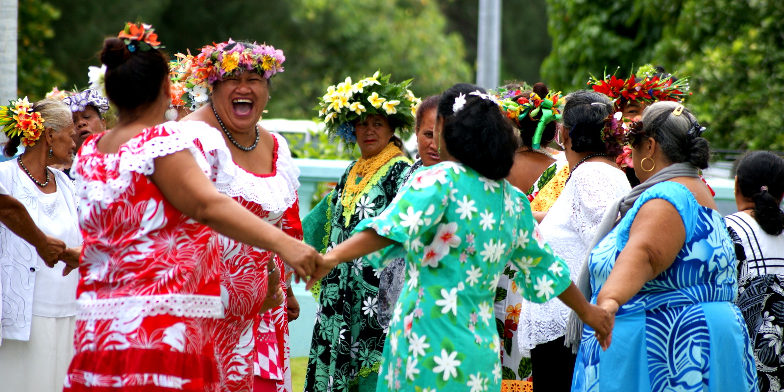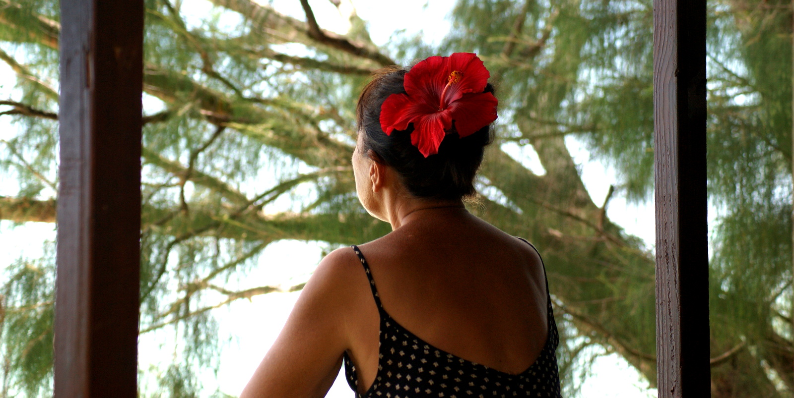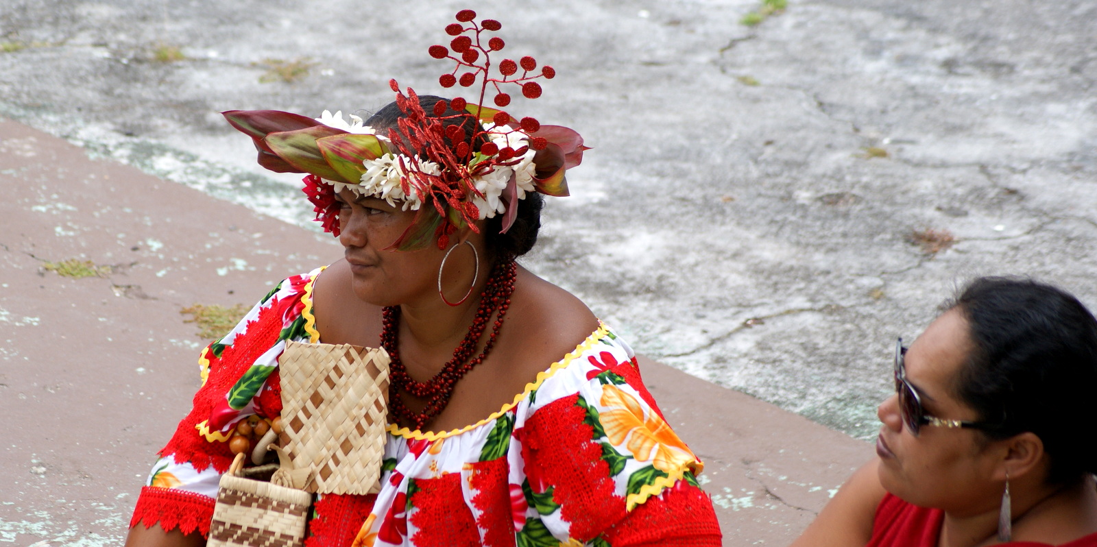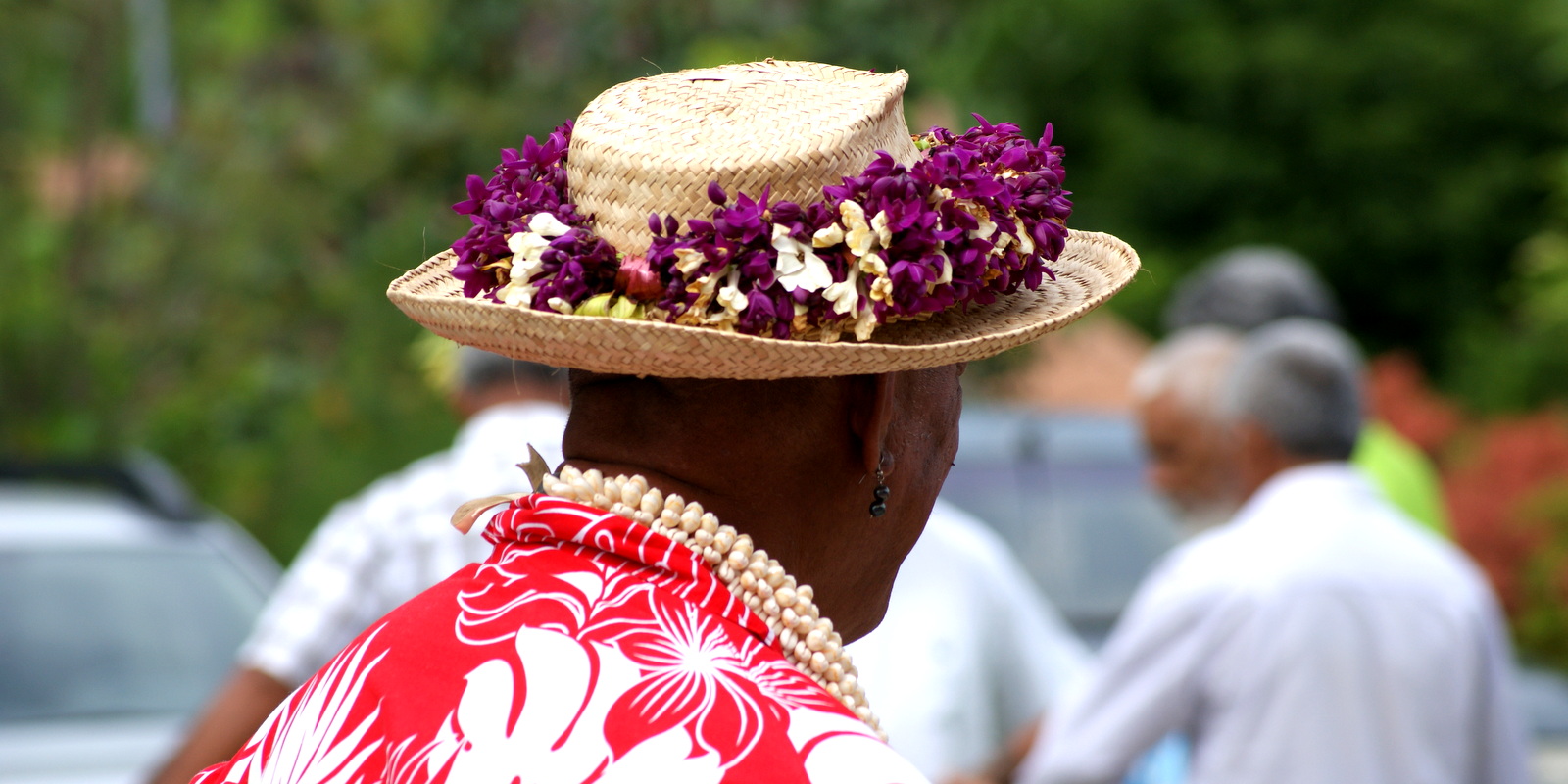 En plus d’une grande messe, un immense buffet est installé le long de la route où sont conviés tous les habitants. Pour cette occasion, tout le monde s’habille de circonstance: belle robe et couronne de fleurs ou chapeau pour les femmes, chemise à fleurs et chapeau pour les hommes…Une robe longue noire et un gros hibiscus du jardin dans un chignon pour moi, une chemise hawaïenne pour mon compagnon et nous voilà prêts à participer à la fête où nous sommes invités…