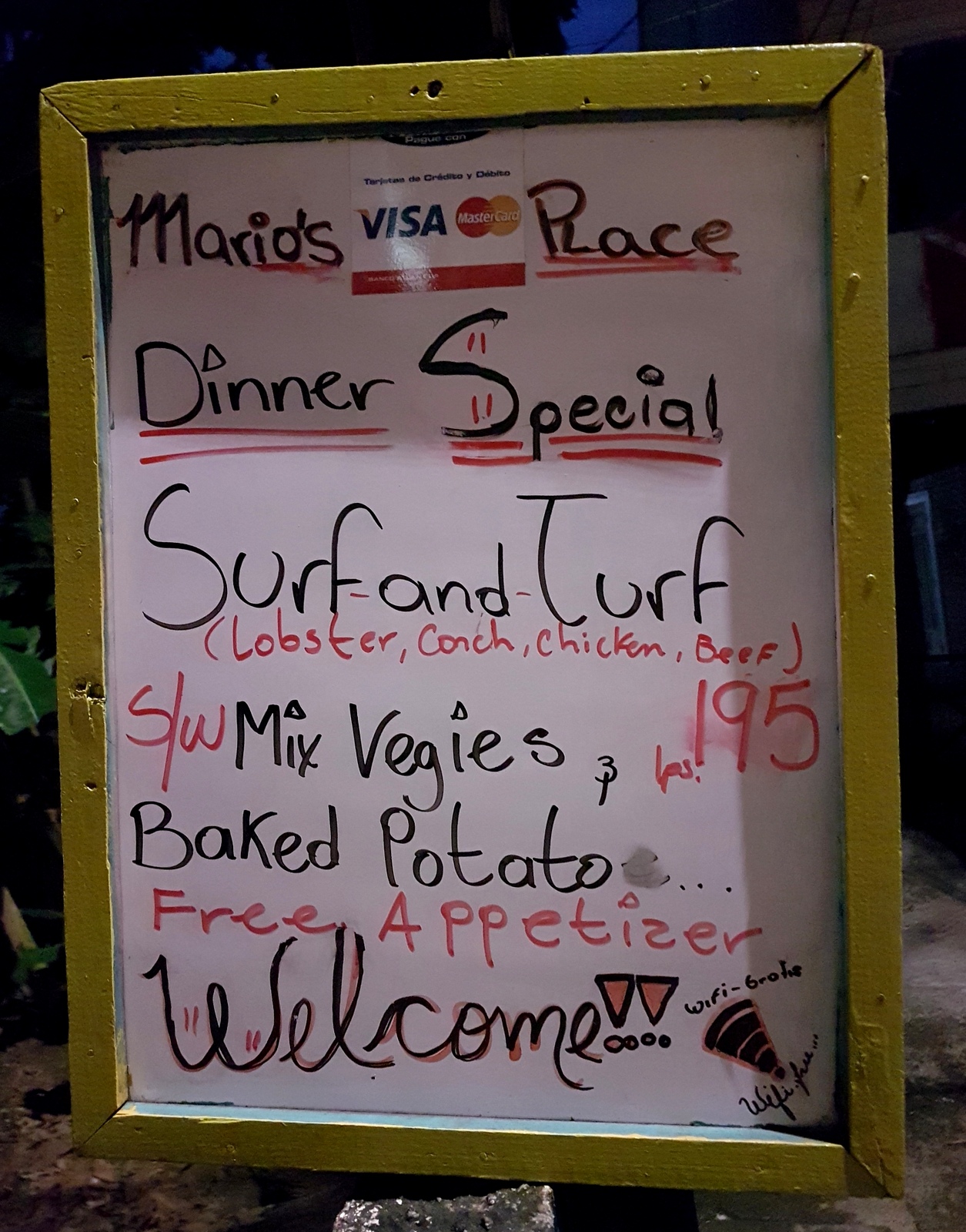 Notre préféré…Nous n’avons jamais été déçus. Depuis le jour où nous avons croisé cette expatriée qui nous a confié que les 2 meilleurs restaurants de l’île étaient MANGO TANGO et MARIO’S PLACE, c’est devenu notre cantine !