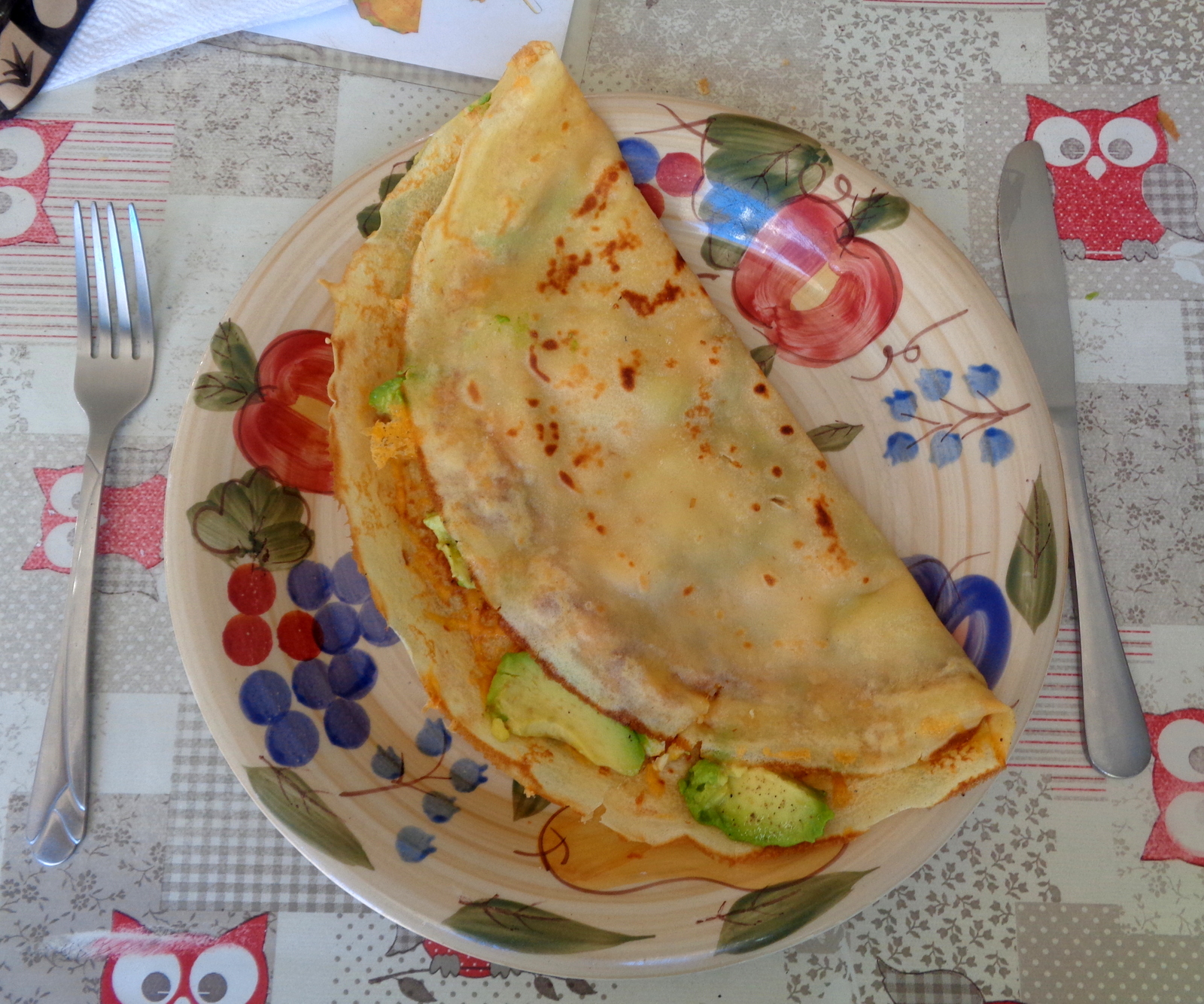 Des crêpes comme à la maison mais uniquement au froment car il n’y a pas de farine de sarrasin sur l’île! La variante salée au fromage-avocat-œuf est fondante à souhait…
